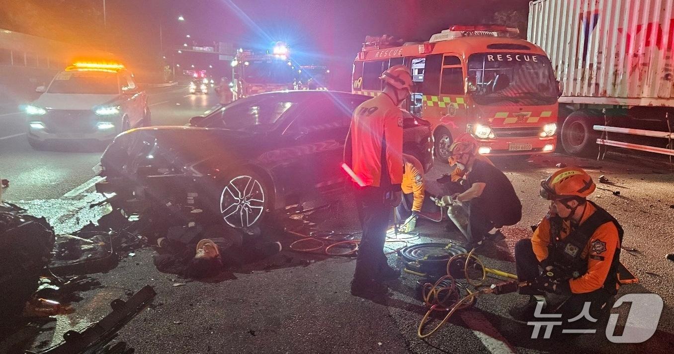 18일 오전 2시30분쯤 충북 청주시 서원구 남이면 경부고속도로 부산 방향 남이분기점 인근에서 차량 3대가 부딪히는 사고가 발생해 4명이 다쳤다.(충북소방본부 제공. 재판매 및 DB 금지) /뉴스1관련 키워드경부고속도로사고관련 기사벤츠 구미 전시장 신규 개장…경북 고객 접점 확대경부고속도로 남사진위IC 부근서 화물차 등 3중 추돌…1명 사망경부고속도 판교JC 근처 화물차 미끄러짐 사고…1차로 통제(종합)'최대 6.6㎝' 눈에 도로 '아수라장'…'9시간 최악 정체'도(종합)경부고속도로 판교JC서 화물차 미끄러짐 사고…일부 차로 통제