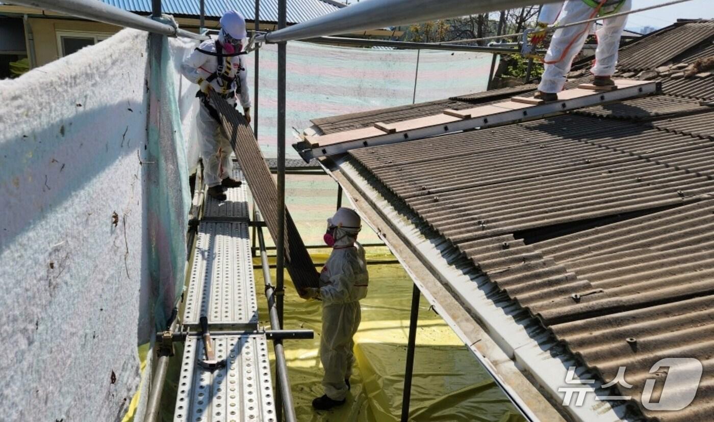 충북 증평군은 슬레이트 철거 및 지붕개량 지원 사업을 한다. 사진은 슬레이트 철거 작업 모습.(증평군 제공)/뉴스1