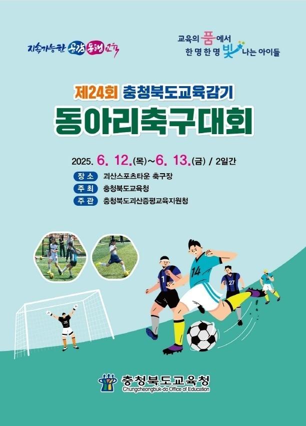 10개 교육지원청 예선 거친 4~6학년 87개팀 654명 참가24회 충청북도교육감기 동아리축구대회 포스터.(충북교육청 제공. 재판매 및 DB금지)/뉴스1관련 키워드동아리축구대회축구충북교육청충북형몸활동엄기찬 기자 충북교육청 2026년 새해 사자성어 '온지성실'사퇴 시기 떠넘긴 고창섭 충북대 총장 '조건부 사직' 역풍관련 기사증평 도안초, 충북교육감기 동아리 축구대회 2개 종목 우승
