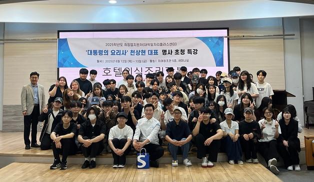 "노력하면 반드시 꿈 이룬다"대통령 요리사 천상현 천상 대표가 12일 충북 청주 서원대학교에서 특강을 했다.(서원대 제공. 재판매 및 DB금지)/뉴스1관련 키워드대통령요리사대통령셰프서원대학교서원대엄기찬 기자 충북교육청 2026년 새해 사자성어 '온지성실'사퇴 시기 떠넘긴 고창섭 충북대 총장 '조건부 사직' 역풍