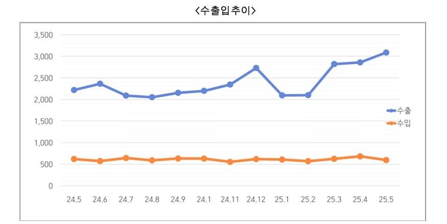 지난 5월 30억8800달러…무역수지 24억9100만달러충북 수출입 추이(청주세관 제공)/뉴스1관련 키워드충북수출박재원 기자 [오늘의 날씨] 충북·세종(19일, 금)…낮 최고 13도, 영상권청주시, 성안동·우암동 국토부 도시재생 공모 선정관련 기사62회 무역의 날 충북 68개사 '수출의 탑'수상단양 단고을 죽령사과 올해 첫 대만 수출길민선8기 전북, 무엇이 달라졌나…신산업 육성→미래 먹거리 창출에코하모니·하하푸드, 진천군에 지역발전기금 기탁金총리 "K-뷰티 해외진출 프로그램 본격 가동…마케팅 지원도 강화"