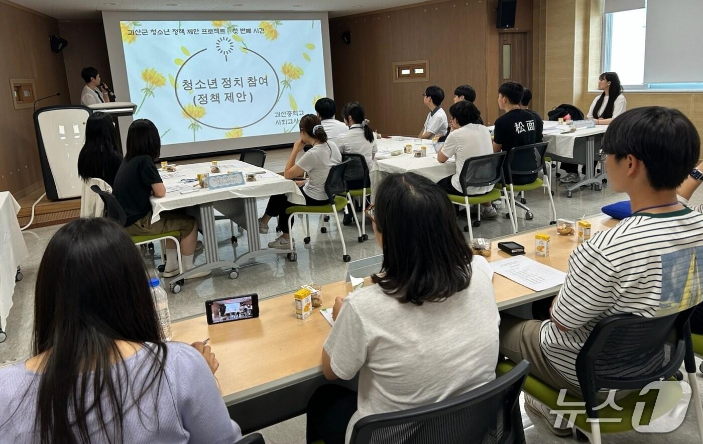 충북 괴산증평교육지원청은 18일 괴산교육도서관 3층 다목적실에서 4회 청소년 정책제안 프로젝트 '괴산해유' 발대식과 사전 워크숍을 개최했다.(괴산증평교육지원청 제공, 재판매 및 DB금지)/뉴스1
