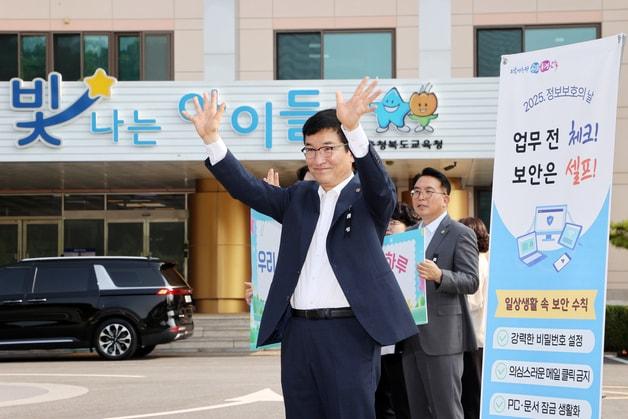 직원들 격려… '잠금은 습관, 클릭 전 확인' 등 실천 수칙 안내출근하는 직원들을 격려하고 '정보 보호의 날 캠페인'을 펼치는 윤건영 충북교육감.(충북교육청 제공. 재판매 및 DB금지)/뉴스1관련 키워드윤건영충북교육감정보보호의날캠페인출근길직원격려엄기찬 기자 윤건영 충북교육감 "내년부터 '소리뜻 한자교육'…문해력 강화"[지방선거 누가 뛰나]충북교육감 다자구도 가능성…관건은 단일화