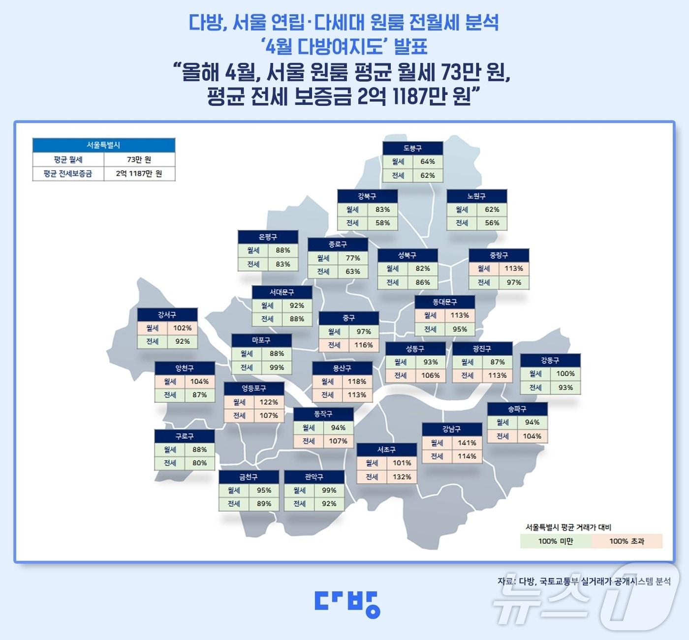 다방, 국토부 실거래가 바탕 '다방여지도' 발표평균 전세 보증금 2억 1187만 원으로 서초가 높아다방여지도.(다방 제공)관련 키워드다방다방여지도한지명 기자 학폭 가해자, 명문대 못 간다…서울 주요 대학서 99% 탈락 시켜오세훈, 종합특검법 통과에 "특검중독 중증…종합 국기문란"관련 기사서울 원룸 월세 평균 72만원…강남구 97만원으로 최고10월 서울 원룸 평균 월세 70만 원…강남구 '95만 원'3분기 서울 국평 아파트 평균 매매가 13억 돌파…전국 평균 2.3배7월 서울 원룸 세입자 평균 월세 73만원…강남구는 94만원서울 원룸 월세 '껑충'…용산 102만원, 한 달 새 45% 급등