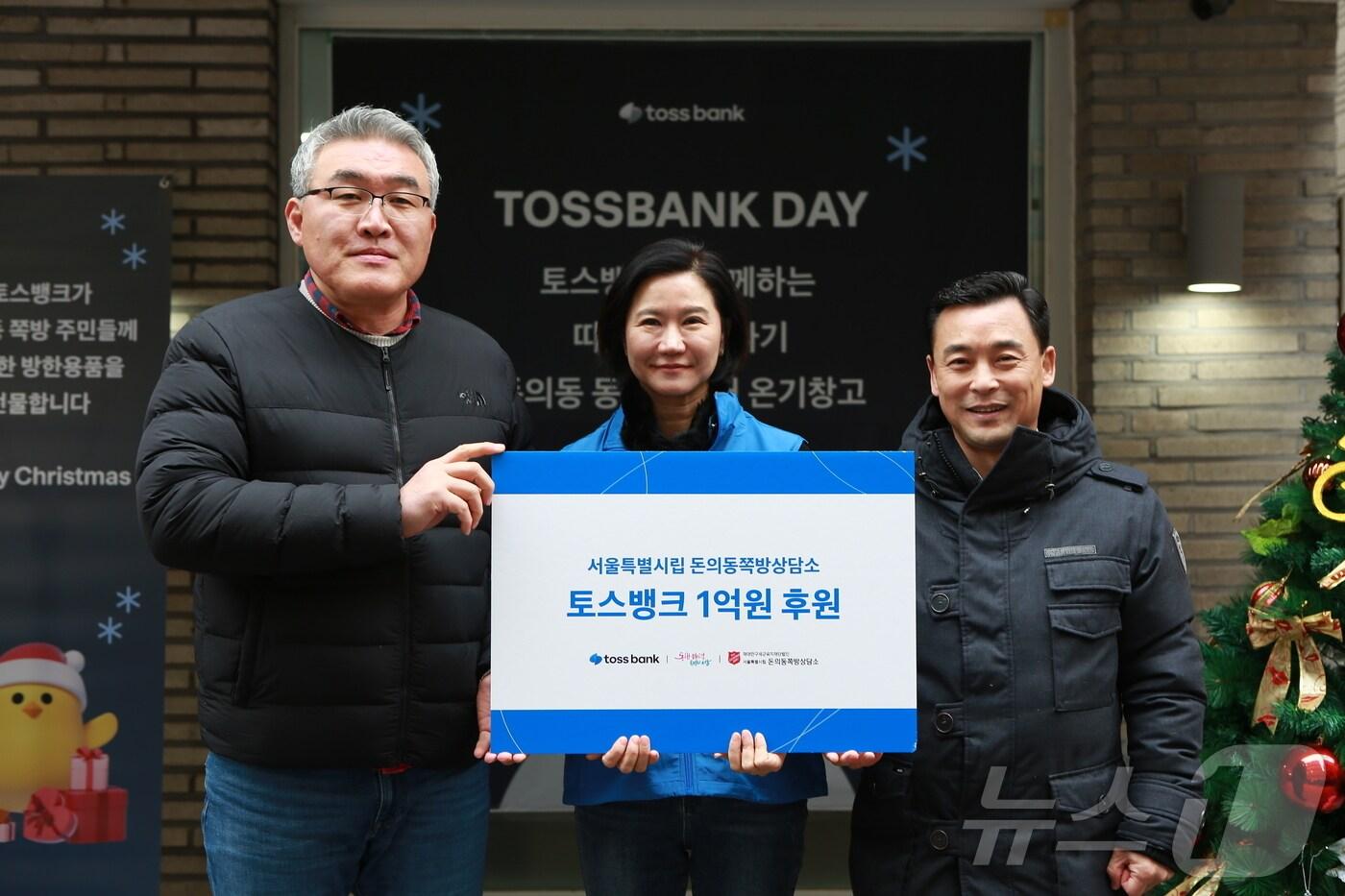 서울시, 토스뱅크와 나눔 이벤트…1억 원 상당 기부먹거리 나눔 등 봉사 활동…'온기나눔 사진관'도 열려20일 돈의동 쪽방촌에서 열린 '서울시-토스뱅크와 함께 하는 토스뱅크데이'에서 이은미 토스뱅크 대표(가운데)가 서울시 정상훈 복지실장(왼쪽에서 세 번째)과 최영민 돈의동 쪽방상담소장(왼쪽에서 첫 번째)에게 기부금을 전달하고 있다.(서울시 제공)관련 키워드돈의동쪽방촌이설 기자 [동정] 오세훈, 고위공직자 대상 청렴 교육 수강전국 집중호우로 대피 3555명 '미귀가'…도로·철도 곳곳 통제관련 기사돈의동 온기창고에 방한용품 지원…토스뱅크, 쪽방촌 봉사서울시, 창신동 쪽방촌에 '온기창고 4호점' 문 열어방경만 KT&G 사장, 돈의동 쪽방촌에 한파구호키트 전달의료급여 급여비 11조5000억대…건보 1인당 진료비의 1.9배토스뱅크, 서울시 '노숙인 등 복지 유공 표창' 수상