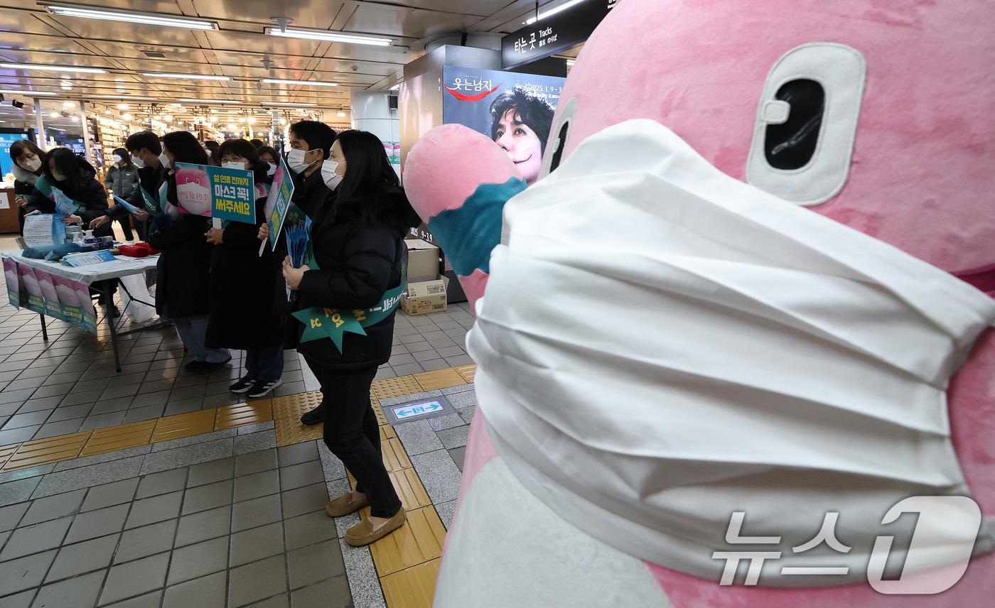 성동구, 서울 자치구 가운데 처음으로 '마스크 착용 의무화' 서울시, 설 연휴 직전 2주 동안 '마스크 착용 캠페인'15일 오전 서울 중구 을지로입구역에서 열린 호흡기감염병 확산 방지를 위한 '마스크 자율착용 실천 대시민 캠페인'에서 서울시 관계자들이 시민들에게 마스크를 나눠주고 있다. 2025.1.15/뉴스1 ⓒ News1 임세영 기자최근 독감(인플루엔자) 유행이 급격하게 확산하고 있는 가운데 5일 서울의 한 어린이병원을 찾은 어린이 환자와 보호자가 진료를 받기 위해 대기하고 있다. 2025.1.5/뉴스1 ⓒ News1 박지혜 기자관련 키워드독감서울시성동구마스크캠페인오세권혜정 기자 서울시, 초미세먼지 기원 잡아낸다…국외 발생 산불 기인 성분 확인[동정] 오세훈, 병오년 새해맞아 국립서울현충원 참배관련 기사"부쩍 추워진 날씨, 무료로 독감 예방접종 하세요"[서울in]