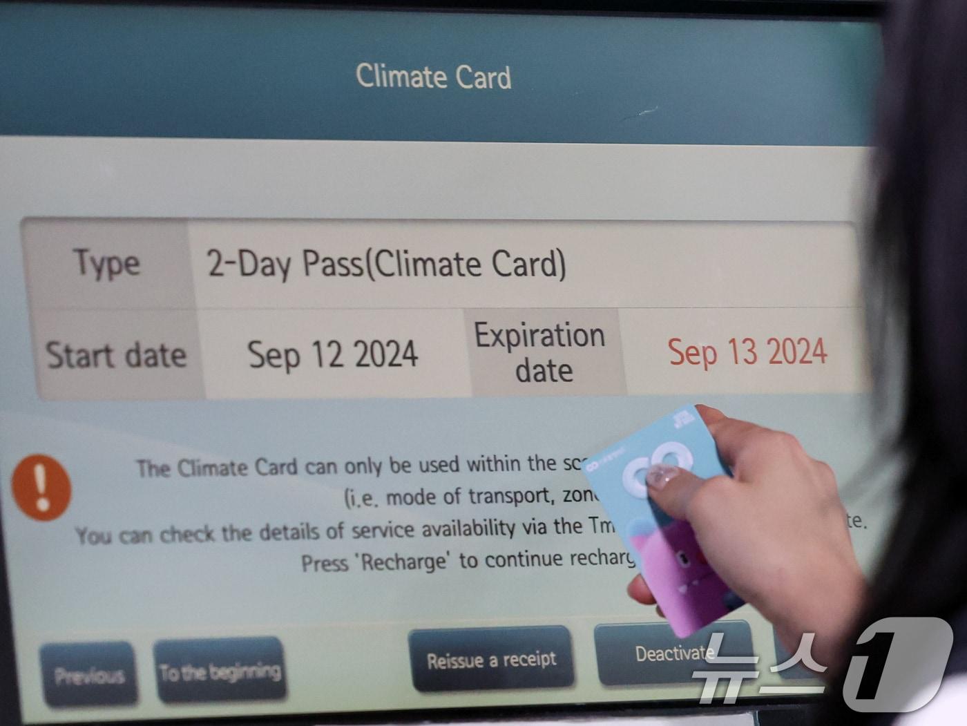 지자체 10곳서 사용…양주시와 업무협약 검토 중경기 K-패스와도 통합 검토… "서울시와 구분 비효율적"서울역에서 외국인이 '기후동행카드'를 충전하고 있다. 서울시는 공항철도 인천공항역에서 하차가 가능하도록 기후동행카드 이용범위를 확대한다고 밝혔다. 2024.9.12/뉴스1 ⓒ News1 황기선 기자관련 키워드기후교통카드이비슬 기자 재수감 성범죄자 신상정보 공개기간 연장…법 개정 추진서울시, 2026 서울국제정원박람회 '작가정원' 5개 확정관련 기사교통안전공단, 자율주행차 200대 실증…내년 레벨4 상용화 기반 구축[뉴스1 PICK]서울 시내버스 파업…'한파에 출근길 시민들 대혼란''The 경기패스' 혜택 ↑…월 6만 2000원 정액권 '모두의 카드' 도입현금 없이도 교통카드 구매…서울지하철 신형 키오스크 설치"기준액 넘으면 모두 환급"…케이뱅크, ONE 체크카드에 '모두의 카드' 도입
