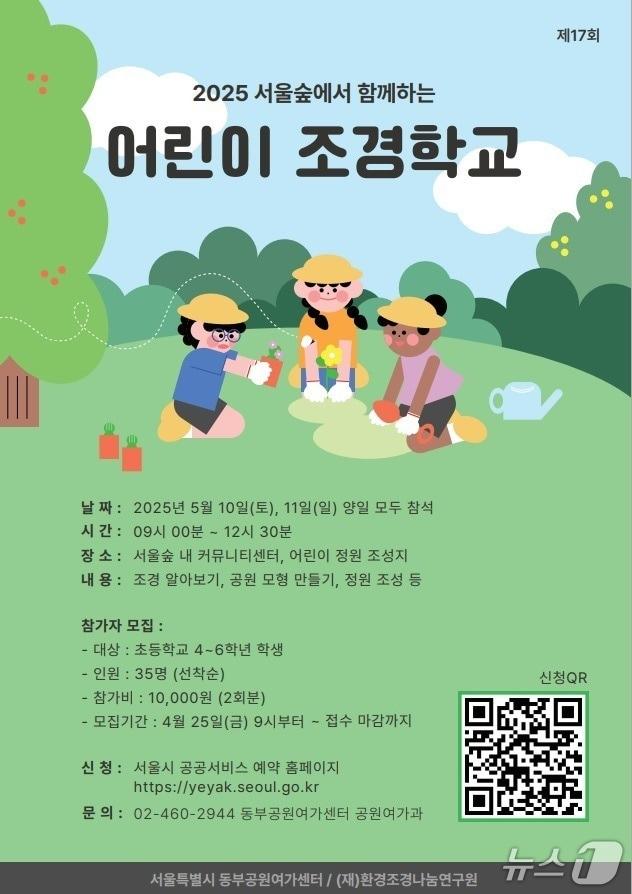 제17회 어린이조경학교 참여자 모집 (서울시 제공) 관련 키워드서울시조경학교어린이권혜정 기자 서울시, 초미세먼지 기원 잡아낸다…국외 발생 산불 기인 성분 확인[동정] 오세훈, 병오년 새해맞아 국립서울현충원 참배관련 기사삼성생명공익재단, 'N번방 수사' 조승노 팀장 등 8명에 행복대상GS건설, '역삼센트럴자이' 12월 분양…대치동 학군 아파트