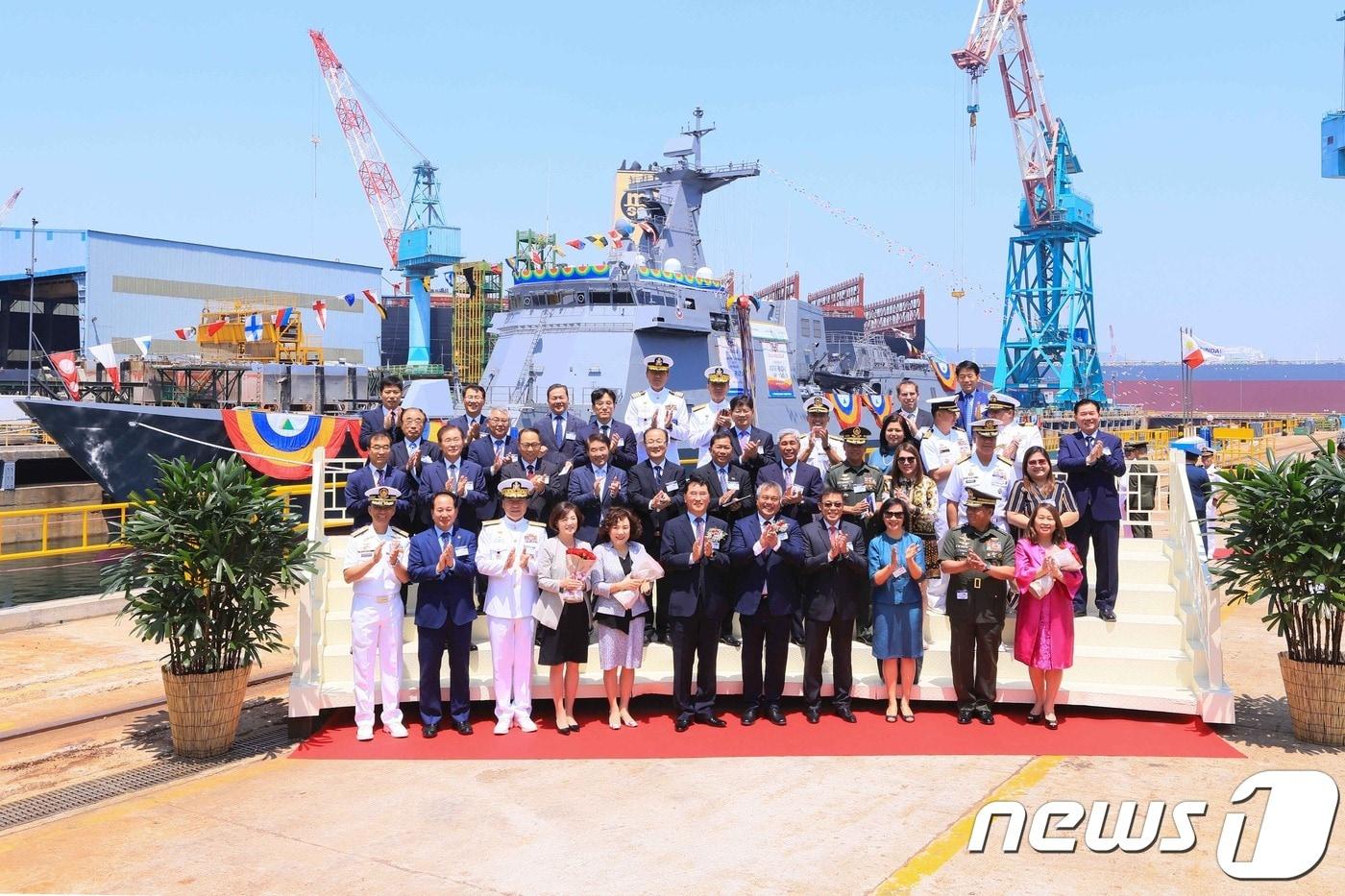 현대중공업이 23일 울산 본사에서 배수량 2600톤급 필리핀의 최신예 호위함을 진수했다.ⓒ 뉴스1