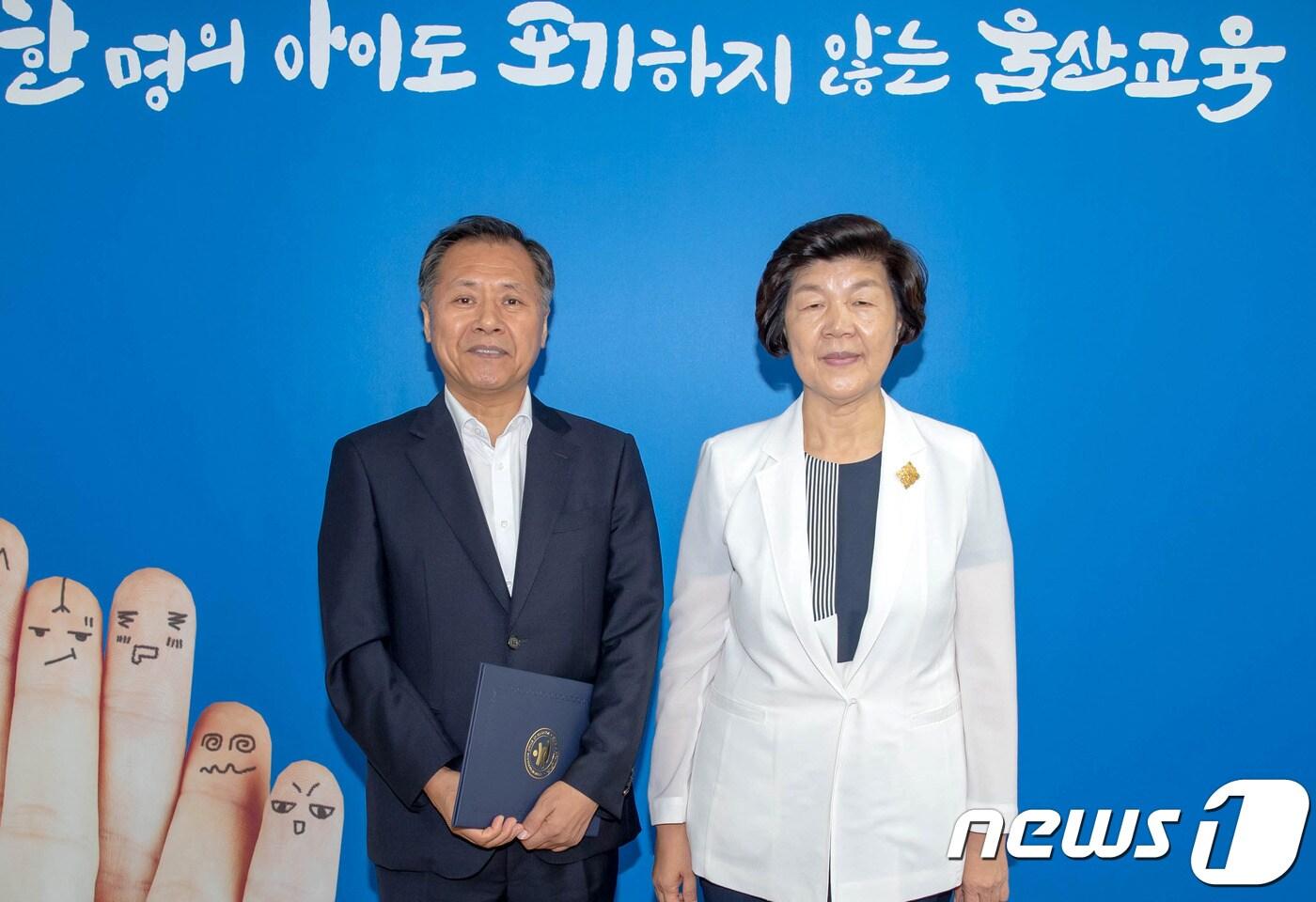 안승문 신임 울산시교육연수원장(왼쪽부터)이 26일 울산시교육청에서 노옥희 울산교육감과 기념촬영을 하고 있다.(울산시교육청 제공) ⓒ 뉴스1조민주 기자 울주군 가축분뇨 처리시설 존폐 위기…군의회 "대책 마련하라"울산시설공단, '서비스품질우수기업' 인증