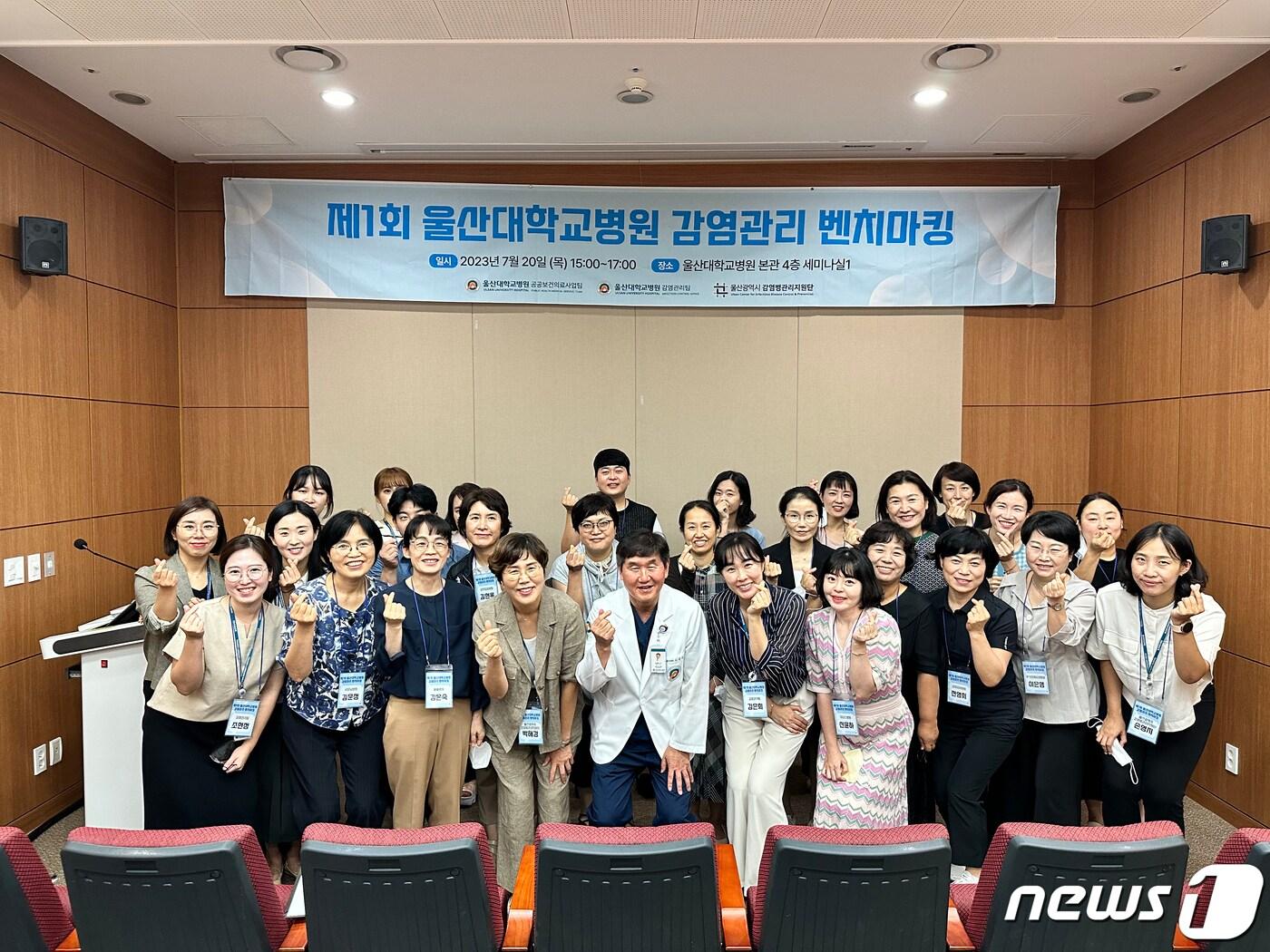 울산대학교병원이 20일 제1회 울산대학교병원 감염관리 벤치마킹을 진행하고 참석한 울산권역 22개 지역병원 감염관리 담당자와 기념촬영을 하고있다.(울산대학교병원제공)관련 키워드울산대학교병원관련 기사울산대병원 "복부 절개 없이 대장암·자궁내막암 로봇 수술 성공"[부고] 김주형 씨(법률사무소 하우림 변호사) 모친상브이동물메디컬센터–울산과학대, 반려동물 보건 분야 교육 강화[인사]신한금융지주·신한은행울산대병원, 울산소방에 150만원 기부