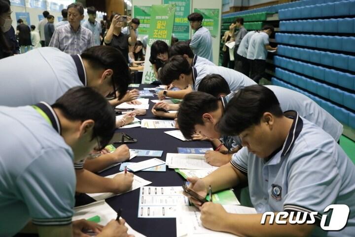 2023 울산 취업박람회…10대 학생들 '북적'가장 큰 메리트 조선업 '높은 연봉' 꼽아30일 오후 울산 동구 전하체육센터에서 열린 '2023 울산조선업박람회'를 찾은 학생들이 참가 희망 신청서를 작성하고 있다.2023.8.30/뉴스1 ⓒ News1 김지혜 기자30일 오후 울산 동구 전하체육센터에서 열린 '2023 울산조선업박람회'에서 취업 희망자가 부스에서 면접을 진행하고 있다.2023.8.30/뉴스1 ⓒ News1 김지혜 기자30일 오후 울산 동구 전하체육관에서 열린 '2023 조선업취업박람회'를 찾은 구직자들이 취업 현황 게시판을 살펴보고 있다.2023.8.30/뉴스1 ⓒ News1 김지혜 기자관련 키워드조선업박람회현대중공업관련 기사원자력 추진 선박 '선점 경쟁' 본격화…한국 2030년·중국 2035년 목표K-조선, 또 컨선으로 '2조 잭팟'…中 견제 '트럼프 특수' 계속대선 주자들, 산업도시 울산 찾아 "산업 발전" 한 목소리한화오션·HD현대重, 美 상무부·해군성과 회동한다