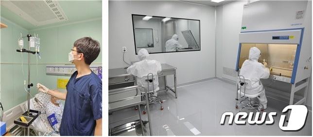 수도권과 지방의 의료격차 허무는 시발점난치성 혈액암 환자 '원샷' 치료제카티세포치료 모습(왼쪽) 카티세포치료센터 세포처리실 내부 모습(오른쪽).(울산대학교병원제공)관련 키워드울산대병원혈액암카티세포치료센터