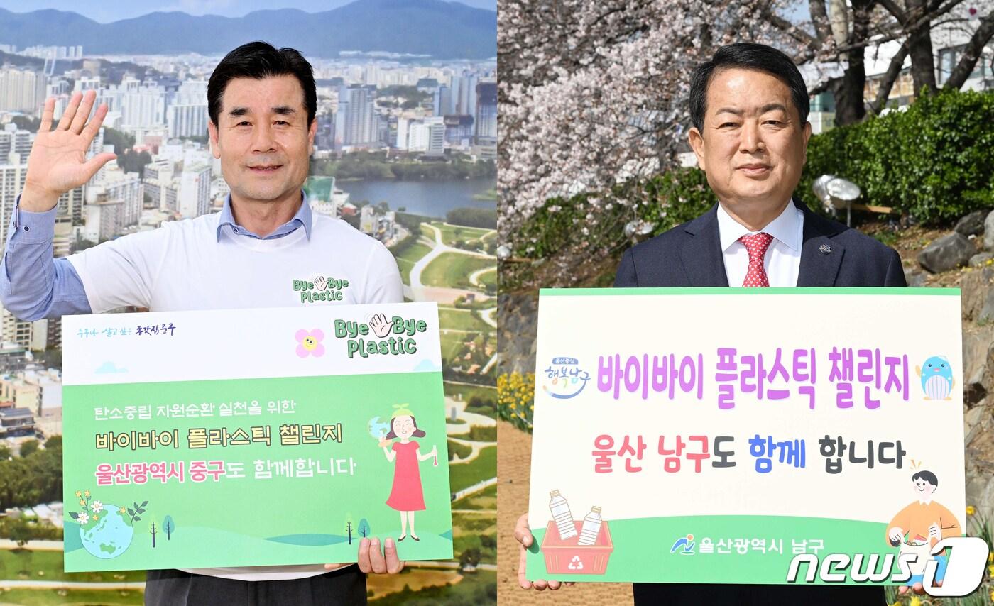 김영길 중구·서동욱 남구청장, 김두겸 시장 지목으로 참여김영길 울산 중구청장(왼쪽)과 서동욱 남구청장이 1일 '바이바이 플라스틱 챌린지'에 동참하고 있다. (울산 중구, 남구 제공)관련 키워드바이바이 플라스틱 챌린지조민주 기자 울산시, 인터넷·스마트폰 과의존 예방 전문인력 모집울주군 가축분뇨 처리시설 존폐 위기…군의회 "대책 마련하라"관련 기사호반그룹, '그린챌린지' 캠페인 진행…그룹 전체 임직원 참여