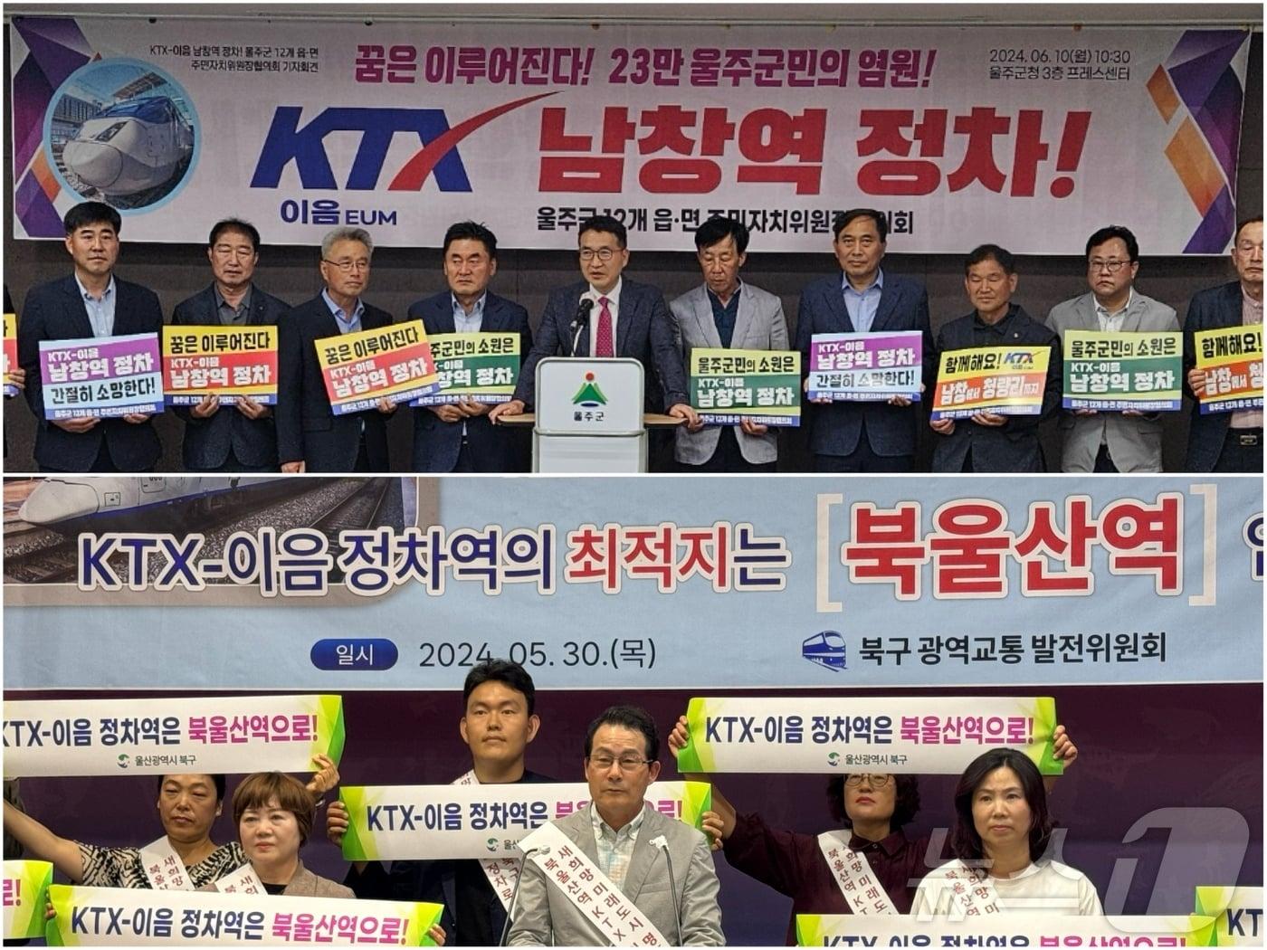 울주군과 북구 주민들은 각각 남창역, 북울산역 KTX-이음 정차역 유치 기자회견을 열었다. 뉴스1 ⓒ News1 김세은 기자관련 키워드KTX이음울산김세은 기자 尹 '체포 방해' 등 징역 5년 선고에 울산시민 반응 엇갈려울산 중구 '동 지역사회보장협의체' 위원 모집…임기 2년관련 기사울산 온양읍 주민들, KTX이음 남창역 정차 기념 탑승 릴레이울산시, 트램 1호선 착공 등 18개 교통분야 과제 추진작년 철도 이용객 1억4600만명 '역대 최고'…전년비 144만명↑이순걸 울주군수 "군립병원 차질 없이 추진…의료공백 해소"[신년인터뷰] 박천동 울산 북구청장 "지속가능한 녹색도시 만들기 총력"