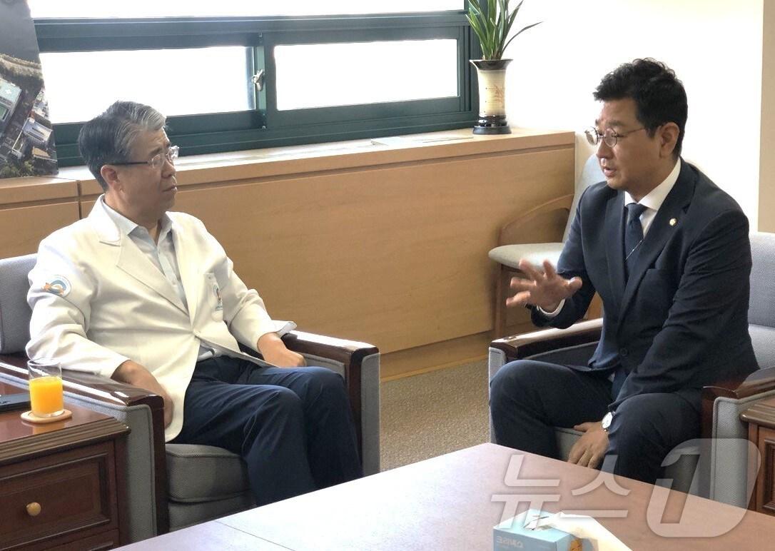 이날 정융기 울산대병원장 만나 주민 대표 반대 명확히 해울산동구 더불어민주당 김태선 국회의원이 1일 정융기 울산대병원장을 만나 울산대병원 이전 반대 뜻을 강조했다고 밝혔다.(김태선 의원실 제공)관련 키워드울산대병원정융기김태선