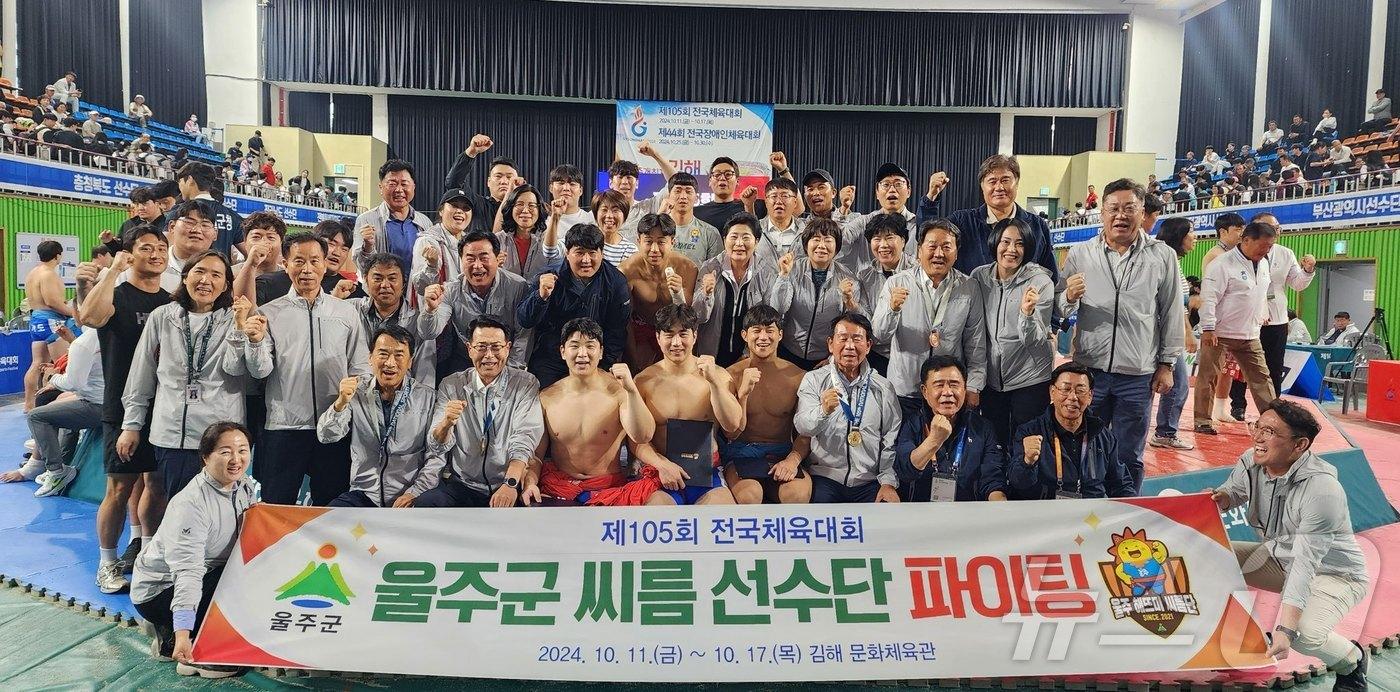 울주군청 해뜨미씨름단이 17일 전국체전이 여린 김해 문화체육관에서 파이팅을 외치고 있다. (울주군 제공)관련 키워드울주군청 씨름단조민주 기자 울주군 가축분뇨 처리시설 존폐 위기…군의회 "대책 마련하라"울산시설공단, '서비스품질우수기업' 인증관련 기사'모래판 괴물' 김민재, 통산 세 번째 천하장사…올해 3개 대회 석권김무호, 천하장사대회 한라장사 등극…통산 9번쨰 정상괴산군청 여자씨름단, 추석장사씨름대회 2체급 석권김민재, 2년 연속 추석 씨름대회 백두장사 등극…통산 16번째 타이틀울주군청 김무호, 울주씨름대회서 정상…3년 연속 추석장사