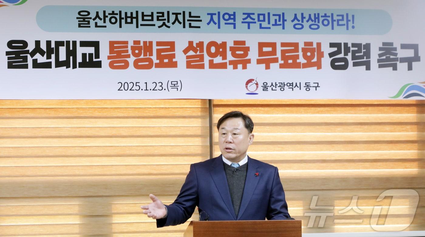 전국적 고속도로 통행료 무료 추세에 반하는 행위김종훈 동구청장이 23일 구청 프레스센터에서 설연휴동안 울산대교 통행료 무료화를 촉구하는 회견을 열고 있다.2025.1.23/뉴스1 ⓒNews1 김지혜 기자관련 키워드울산동구울산대교울산동구관련 기사민주당 "울산대교 통행료, 동구민은 50% 인하하자"…시 "재정에 부담"울산 동구 미포구장~울산대교 전망대 '테마 숲길' 조성…2억 투입울산 동구 '염포산 전국마라톤대회' 개최…봉수로 일대 차량 통제이재명 울산 7대 공약 발표…'공공의료원 설립' 등 약속울산대교 통행료 4월 1일부터 1년간 동결… '8년째'
