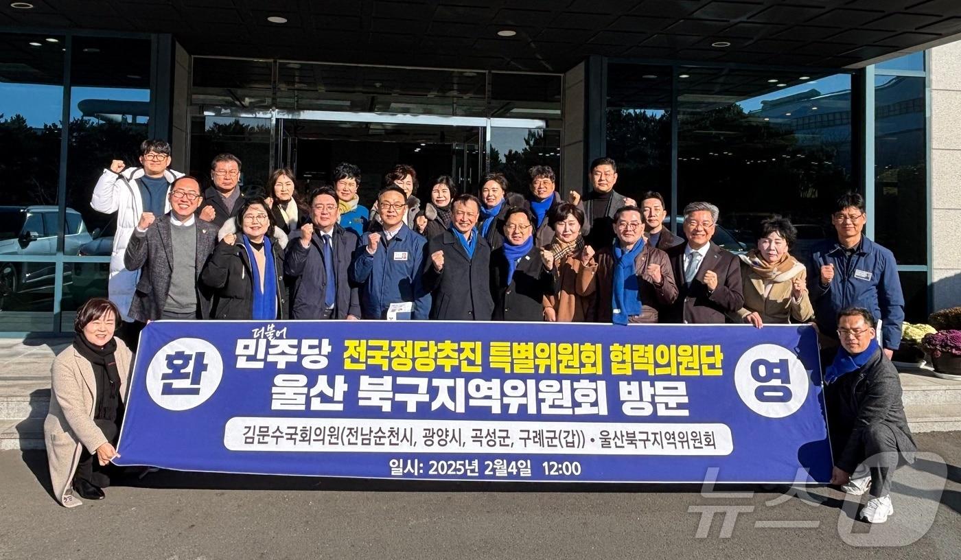 더불어민주당 전남 순천갑지역위원회가 전날인 4일 민주당 울산북구지역위원회를 방문해 기념사진을 찍고 있다.(민주당 제공)관련 키워드더불어민주당울산북구전남순천김세은 기자 울산 유일 시내면세점 13년 만에 폐업…"고환율에 적자 누적"[오늘의 날씨] 울산(17일, 토)…일교차 커, 대기 매우 건조관련 기사[오늘의 주요일정] 정치·정부 (2일, 일)[오늘의 주요일정] 정치·정부 (19일, 일)[오늘의 주요일정] 정치·정부 (30일, 금)[오늘의 주요일정] 정치·정부 (29일, 목)[오늘의 주요일정] 정치·정부 (16일, 금)