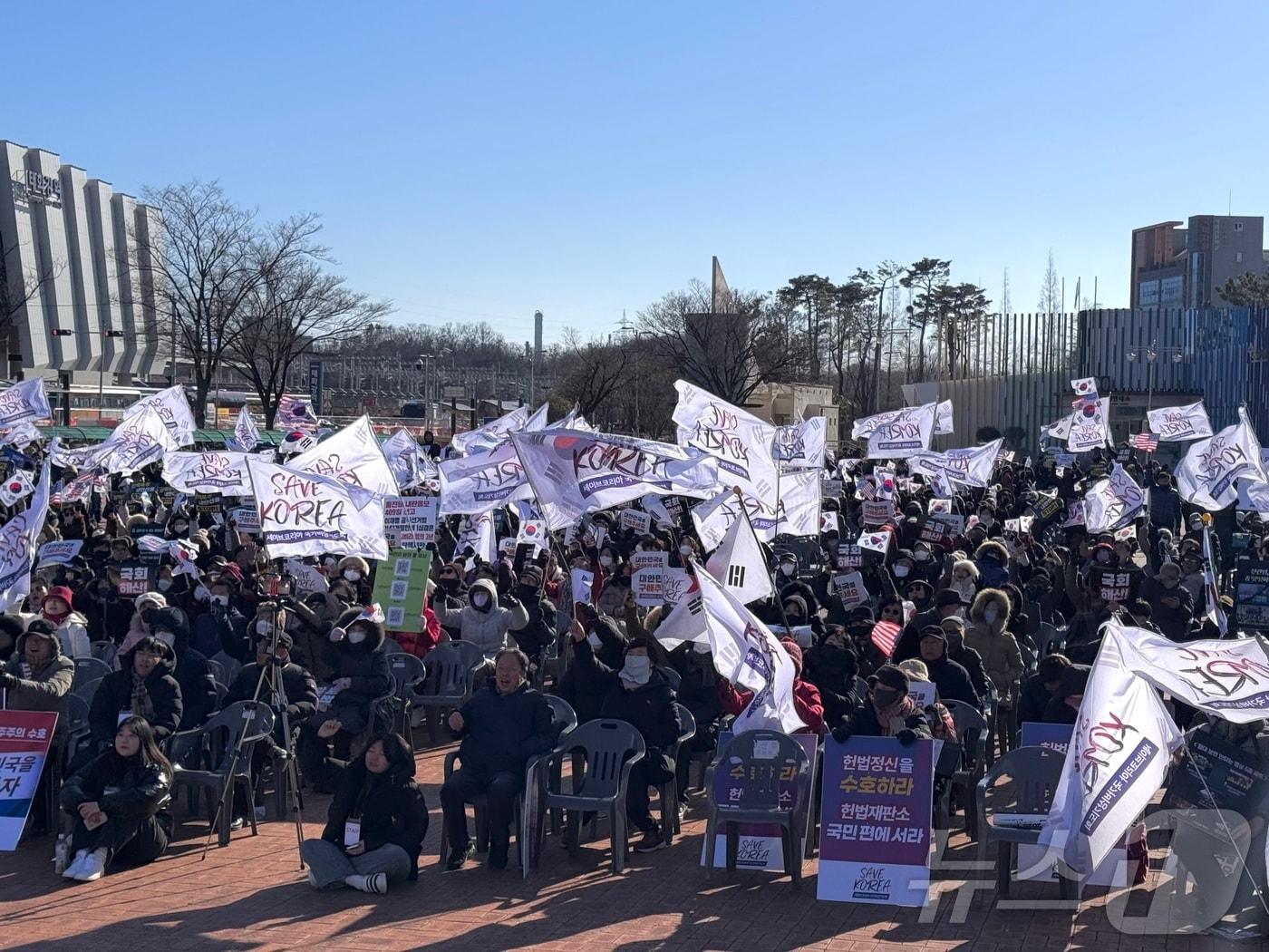울산 태화강역·롯데백화점 앞 각각 열려…충돌 없이 마무리8일 오후 2시 울산 태화강역에서 개신교계 단체 세이브코리아 주최 '제1차 세이브코리아 울산 시민대회'가 열려 경찰 추산 900명이 집결했다.2025.2.8./뉴스1 김세은 기자황교안 전 총리가 8일 울산 탄핵 반대 집회에 참석해 "대통령 탄핵 사유가 없다고 생각한다"고 주장했다. 2025.2.8./ 뉴스1 김세은 기자8일 오후 4시 울산 롯데백화점 앞에는 윤석열즉각퇴진울산운동본부가 주최한 '윤석열 즉각 파면 울산시민대회'가 열려 경찰 추산 150명이 참가했다.2025.2.5./뉴스1 김세은 기자관련 키워드울산尹비상계엄선포황교안탄핵윤석열김세은 기자 울산 유일 시내면세점 13년 만에 폐업…"고환율에 적자 누적"[오늘의 날씨] 울산(17일, 토)…일교차 커, 대기 매우 건조