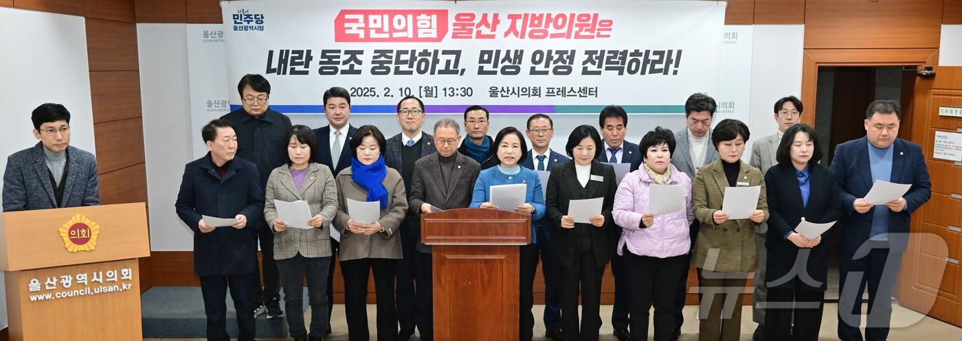 울산시의회·울산 남구의회, '이재명 신속 재판 건의안' 상정더불어민주당 소속 울산 지방의원들이 10일 오후 시의회 프레스센터에서 기자회견을 열고 "국민의힘은 내란 동조 중단하고 민생 안정 전력하라"고 밝혔다.(울산시의회 제공)관련 키워드울산시의회더불어민주당이재명울산남구의회김세은 기자 울산 유일 시내면세점 13년 만에 폐업…"고환율에 적자 누적"[오늘의 날씨] 울산(17일, 토)…일교차 커, 대기 매우 건조관련 기사[오늘의 주요일정] 정치·정부 (14일, 수)백운찬 전 울산시의원, 북구청장 출마 선언울산 여야 정당, 신년 행사 열고 "지방선거 승리" 결의[인터뷰 전문]경민정 "장경태가 두려워하는 건 '자기 진영' 사람들의 비난""수성이냐 탈환이냐" 내년 울산 북구청장 선거 여야 대결구도 주목