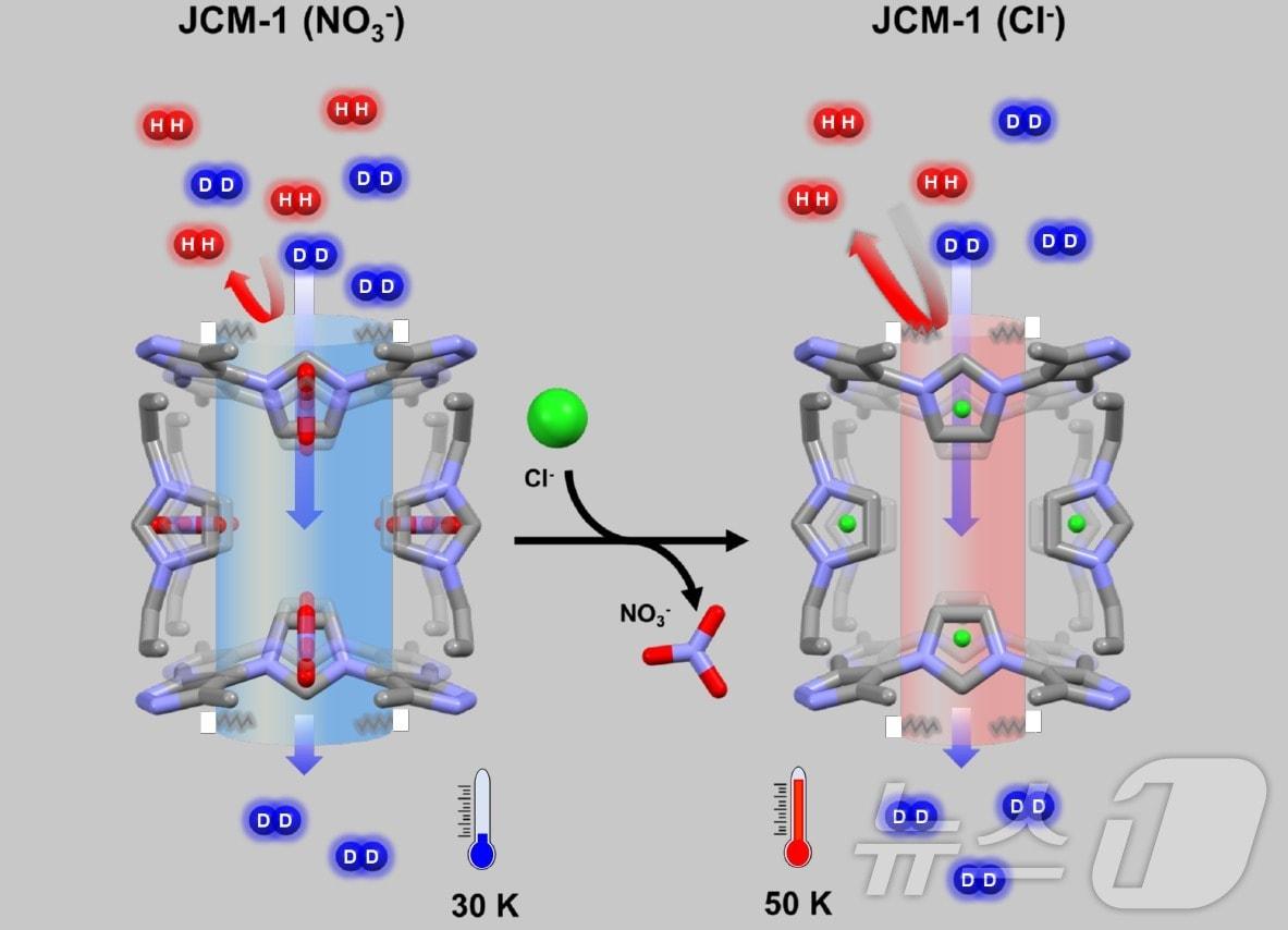 이온 교환 방식을 통한 다공성 물질의 기공조절과 중수소 분리 개념도. (UNIST 제공)관련 키워드중수소조민주 기자 울주군 가축분뇨 처리시설 존폐 위기…군의회 "대책 마련하라"울산시설공단, '서비스품질우수기업' 인증관련 기사수십년 난제 '핵 생성' 비밀 풀려…중수소 생성 메커니즘 규명현대차그룹 中수소법인, 광저우市 수소버스 224대 수주'꿈의 에너지원' 인공태양은? 1g 수소로 석유 8톤 에너지 확보李대통령, 핵융합에너지 연구현장 점검…AI 시대 전력 대비"인공태양 연구시설 유치"…나주시민추진위원회 출범