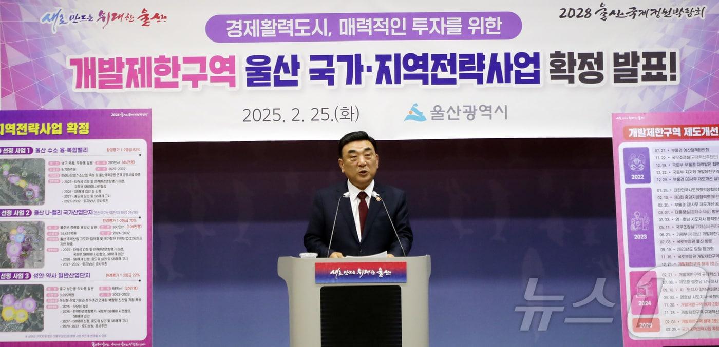 울산시, GB 해제 3개소 선정…20조 생산유발효과"울산 미래 먹거리 육성·청년 일자리 창출 기대"김두겸 울산시장이 25일 국토교통부 개발제한구역(GB) 국가지역전략사업 선정에 관한 브리핑을 하고 있다.2025.2.25/뉴스1 ⓒNews1 김지혜 기자김두겸 울산시장이 25일 국토교통부 개발제한구역(GB) 국가지역전략사업 선정에 관한 브리핑을 하고 있다.2025.2.25/뉴스1 ⓒNews1 김지혜 기자관련 키워드울산김두겸시장울산시GB관련 기사울산시, 트램 1호선 착공 등 18개 교통분야 과제 추진국힘 '한동훈 제명'에 김두겸 울산시장 "입장 없어…국민 기대 부응해야"[오늘의 주요일정] 울산(15일, 목)울산대공원·태화강국가정원서 '울산 마차' 15대 운행김두겸 울산시장, 리얼미터 광역단체장 평가서 '정당지표 상대지수' 1위
