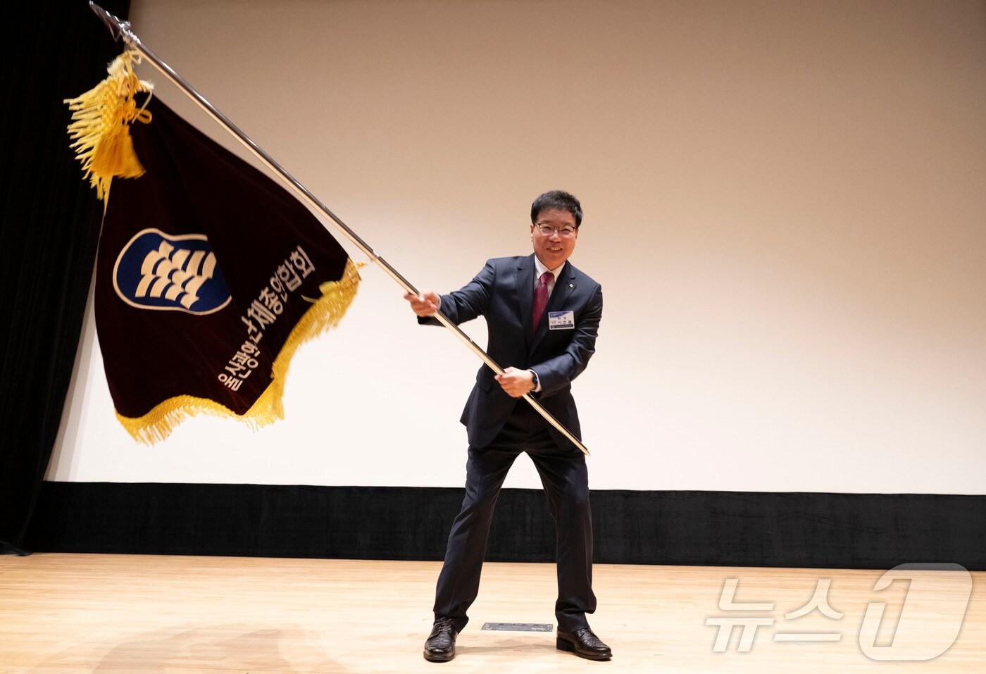 이진철 울산교총 신임 회장이 6일 울주문화예술회관에서 열린 취임식에서 교총기를 들고 있다. (울산교총 제공. 재판매 및 DB 금지) /뉴스1관련 키워드울산교총조민주 기자 울주군 가축분뇨 처리시설 존폐 위기…군의회 "대책 마련하라"울산시설공단, '서비스품질우수기업' 인증관련 기사'이념 대결은 팽팽, 인물 대결은 현역 강세'…울산교육감 선거판세'서이초 교사 순직 2주기' 전북교사 79% “달라진 게 없다“울산교총 "수업 중 휴대폰 사용 제한, 국회 교육위 통과 환영"늘봄강사 자격 검증 '부실'…"관리 강화하되 사상 검증 막아야"제주 교사 사망에…울산교총 "실효성 있는 교사 보호 제도 마련을"