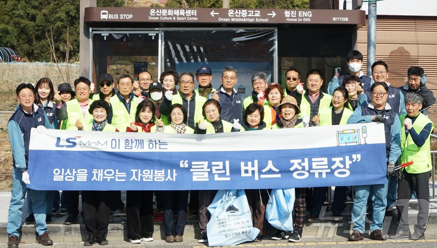 LS MnM 임직원과 울산시 울주군 온산읍 주민들이 11일 온산읍의 한 버스정류장에서 환경 정화 봉사활동을 하고 있다. (LS MnM 제공. 재판매 및 DB 금지) /뉴스1관련 키워드클린버스정류장조민주 기자 울주군 가축분뇨 처리시설 존폐 위기…군의회 "대책 마련하라"울산시설공단, '서비스품질우수기업' 인증관련 기사LS MnM, '대한민국 자원봉사대상' 국무총리 표창보험사, GA 보험사기 관리·평가 강화…설계사 보험사기 전력 공시 확대'11일째 폭염'에 대구시 비상2단계 상향…온열질환자 작년比 4.5배↑