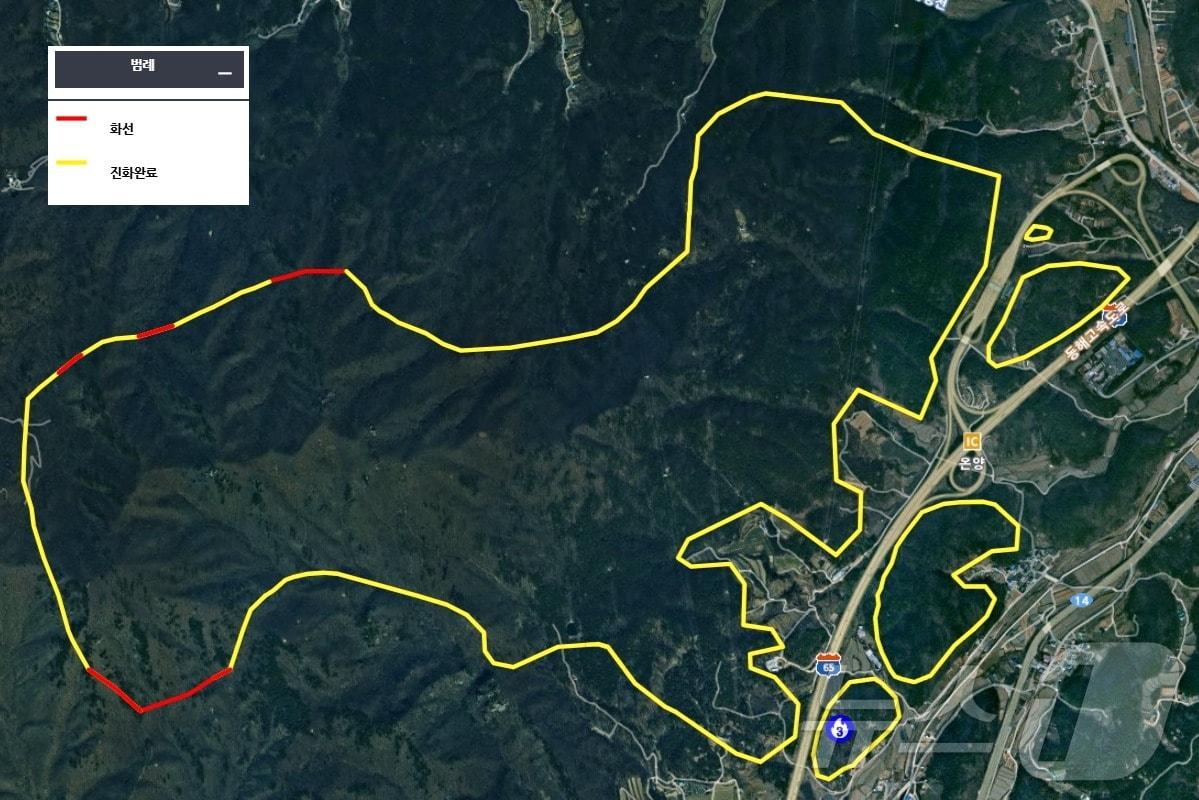 정상까지 1시간 이상 소요 특별진화대 180여 명 대운산 정상서 진화 작업25일 오전 8시19분 기준 울산 울주 산불상황도. (산림청 제공. 재판매 및 DB 금지) /뉴스1관련 키워드특별진화대조민주 기자 울주군 가축분뇨 처리시설 존폐 위기…군의회 "대책 마련하라"울산시설공단, '서비스품질우수기업' 인증관련 기사윤호중 장관 "양양 산불 확산 막아야…가용 자원 총동원·주민 대피 우선"강원 인제 산불 확산 우려…행안장관 "조기 진화 총력" 지시경남도, 산불방지대책본부 조기 가동…내년 5월15일까지 비상근무강원도, 동해안 극심한 가뭄에 산불방지 특별대책 조기 가동이철우 경북지사 "경주 APEC, 국제적 리더십 발휘할 기회"