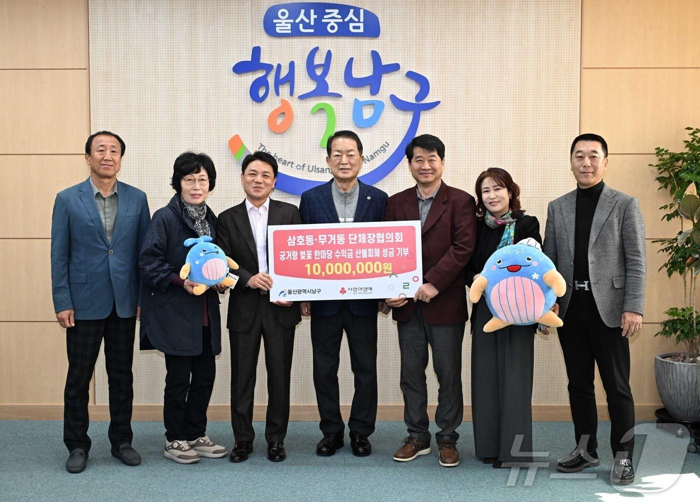 남구 삼호동 단체장협의회와 무거동 단체장협의회가 1일 남구청을 방문해 산불로 인한 이재민 구호와 피해 복구에 써 달라며 1000만 원을 울산사회복지공동모금회에 지정기탁했다.(울산 남구 제공. 재판매 및 DB 금지)/뉴스1관련 키워드울산남구김세은 기자 울산 유일 시내면세점 13년 만에 폐업…"고환율에 적자 누적"[오늘의 날씨] 울산(17일, 토)…일교차 커, 대기 매우 건조관련 기사울산 유일 시내면세점 13년 만에 폐업…"고환율에 적자 누적"롯데삼동복지재단, 울산 5개 구·군에 4억 상당 생활필수품 전달[오늘의 날씨] 울산(16일, 금)'10명 사상' 에쓰오일 공장 사고 실무 책임자 실형…경영진은 무죄울산시, 1월 정기분 등록면허세 42억 5900만원 부과