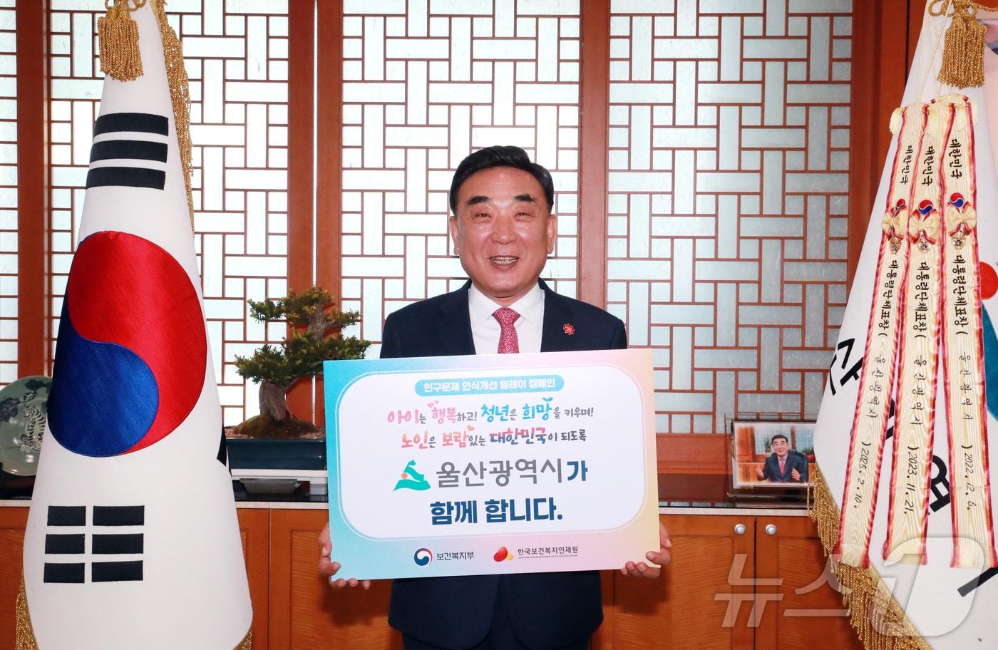 김두겸 울산시장이 인구문제 인식개선 릴레이 캠페인에 참여하고 기념촬영을 하고 있다.(울산광역시제공. 재판매 및 DB 금지)2025.4.7/뉴스1관련 키워드울산김두겸시장관련 기사울산시, 트램 1호선 착공 등 18개 교통분야 과제 추진국힘 '한동훈 제명'에 김두겸 울산시장 "입장 없어…국민 기대 부응해야"[오늘의 주요일정] 울산(15일, 목)울산대공원·태화강국가정원서 '울산 마차' 15대 운행김두겸 울산시장, 리얼미터 광역단체장 평가서 '정당지표 상대지수' 1위