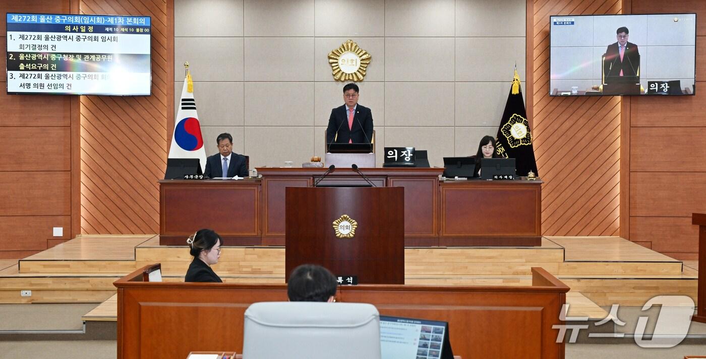 11일 오전 울산 중구의회 본회의장에서 제272회 임시회 제1차 본회의가 열리고 있다. (울산 중구의회 제공. 재판매 및 DB 금지) /뉴스1관련 키워드중구의회조민주 기자 울주군 가축분뇨 처리시설 존폐 위기…군의회 "대책 마련하라"울산시설공단, '서비스품질우수기업' 인증관련 기사구민 아닌 '국회의원 바라기' 구의원…공천만 되면 당선 '프리패스'경찰, '김병기 의혹' 전방위 조사…前수사팀장·보좌진 소환(종합)'울산 중구청장 출마 '고호근 "원도심 살려 역동적인 도시 만들 것"경찰, '김병기 의혹' 전방위 조사…前수사팀장·보좌진 소환겸직 가능에 워라밸까지…'공천헌금' 논란 반복되는 기초의원 공천