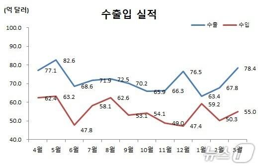 선박 수출액 증가…석화제품·자동차 감소수입액은 55억달러…전년보다 6.9% 늘어2025년 3월 울산지역 수출입 실적. (관세청 제공. 재판매 및 DB 금지) /뉴스1관련 키워드울산 수출입 동향조민주 기자 울주군 가축분뇨 처리시설 존폐 위기…군의회 "대책 마련하라"울산시설공단, '서비스품질우수기업' 인증관련 기사"'돈 풀기' 답 아냐…스스로 '버티는 힘' 필요"[자강불식 中企]울산 11월 수출 64억 달러…전년동월 대비 5.7%↓[제조업 르네상스]①AI 특수·미중 갈등, 제조업 '성장 엔진' 부활울산 10월 수출 63억달러…전년 동월 대비 8.4%↓울산 3분기 수출 236억 달러…전년 동기비 8.1%↑
