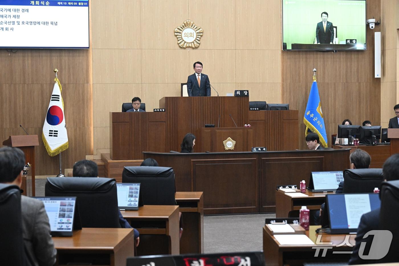 울산 울주군의회(의장 최길영)는 18일 제237회 임시회 제1차 본회의를 열고 13일간의 의사일정에 돌입해다.(울주군의회 제공·. 재판매 및 DB 금지)관련 키워드울주군김재식 기자 울산폴리텍대, 美퍼듀대와 피지컬 AI 공동연구울산교육청 '디지털기기 활용 안내서' 학교에 보급관련 기사울주군 가축분뇨 처리시설 존폐 위기…군의회 "대책 마련하라"울산 회야댐서 먹황새·검독수리 등 천연기념물 관찰울주군, 군민안전보험 보장금액 상향·항목 확대롯데삼동복지재단, 울산 5개 구·군에 4억 상당 생활필수품 전달[오늘의 날씨] 울산(16일, 금)