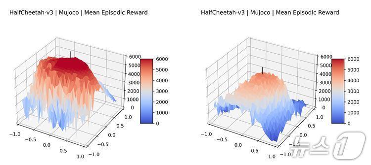 누적 보상 함수의 3D 시각화 그래프. (UNIST 제공. 재판매 및 DB 금지) /뉴스1관련 키워드AI 강화학습 기법조민주 기자 울주군 가축분뇨 처리시설 존폐 위기…군의회 "대책 마련하라"울산시설공단, '서비스품질우수기업' 인증관련 기사젠슨 황, 차세대 GPU '루빈' 공개…"연내 베라루빈 출시"AI로 멧돼지 출몰 예측…북한산 탐방로 안전지도 적용카카오, '카나나-2' 오픈소스 공개…성능·효율 획기적 개선'삐뚤빼뚤하게 쓴 주관식 수학문제 답안도 채점' AI 모델 개발KAIST, AI에 '가정교사' 붙였다…"사람 선호 효과적 반영"