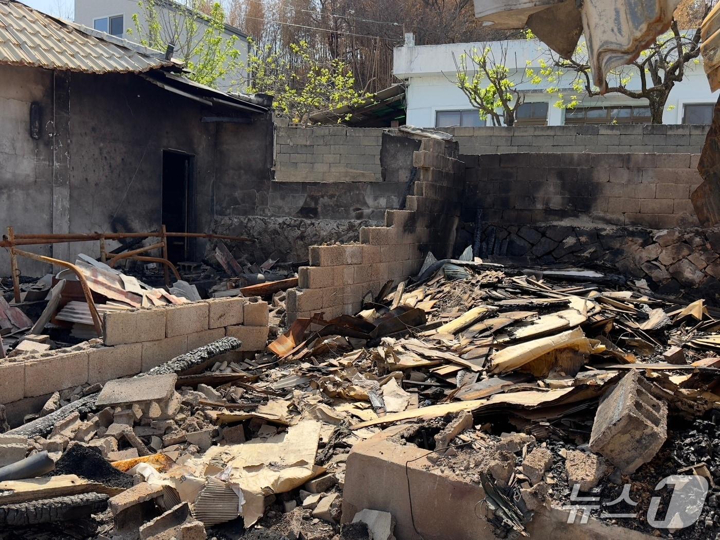 인근 마을 주민들 "집 잃은 상실감 여전"지난달 발생한 온양·언양 산불로 산림 1190㏊ 소실지난 21일 찾은 울산 울주군 언양읍 직동리 신화마을의 한 주택이 앙상한 뼈대만 남아 있다.2025.4.21./뉴스1 김세은 기자지난 21일 찾은 울산 울주군 언양읍 직동리 신화마을의 한 창고가 불에 탄 모습.2025.4.21./뉴스1 김세은 기자지난 21일 찾은 울산 울주군 온양읍 일대 야산이 불에 탄 모습.2025.4.21./뉴스1 김세은 기자관련 키워드울산대형산불울주군온양언양김세은 기자 울산 유일 시내면세점 13년 만에 폐업…"고환율에 적자 누적"[오늘의 날씨] 울산(17일, 토)…일교차 커, 대기 매우 건조관련 기사[오늘의 국회일정] (31일, 금)잇단 산불·호우피해 입은 경남, 공공시설 피해 복구 더뎌울산 환경단체 "산불특별법이 '난개발' 초래…법 개정해야"급속 확산 소나무재선충병 속수무책…5년간 413만 그루 피해전국 '물폭탄'…경남 6명 사망·심정지·실종, 영호남서 큰 피해(종합3보)