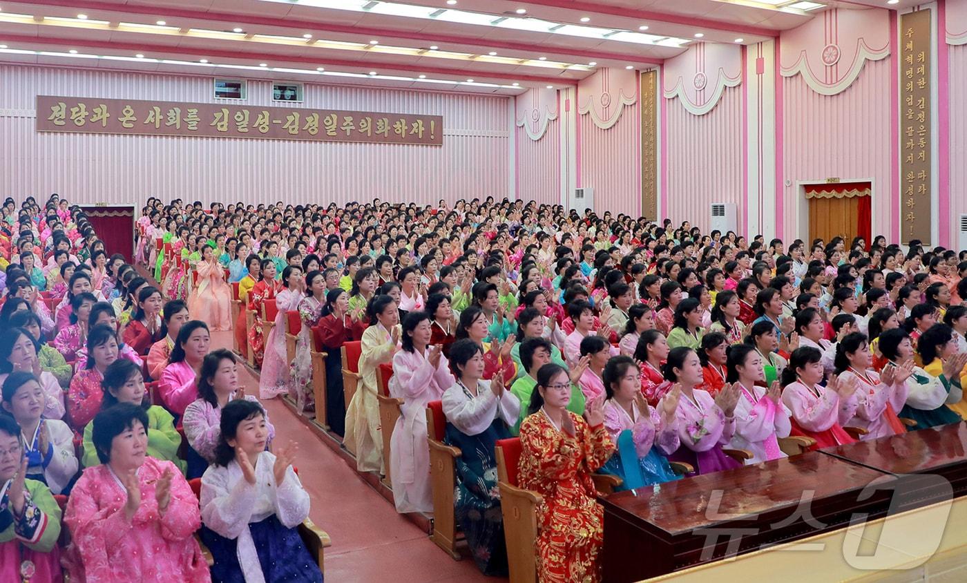 (평양 노동신문=뉴스1) = 북한 노동당 기관지 노동신문은 지난 5일 "3·8국제부녀절 115돌 기념 공산주의 어머니 영예상 수상자들과 여맹일꾼들, 여맹원들의 상봉모임이 지난 4일 여성회관에서 진행됐다"라고 보도했다. [국내에서만 사용가능. 재배포 금지. DB 금지. For Use Only in the Republic of Korea. Redistribution Prohibited] rodongphoto@news1.kr
