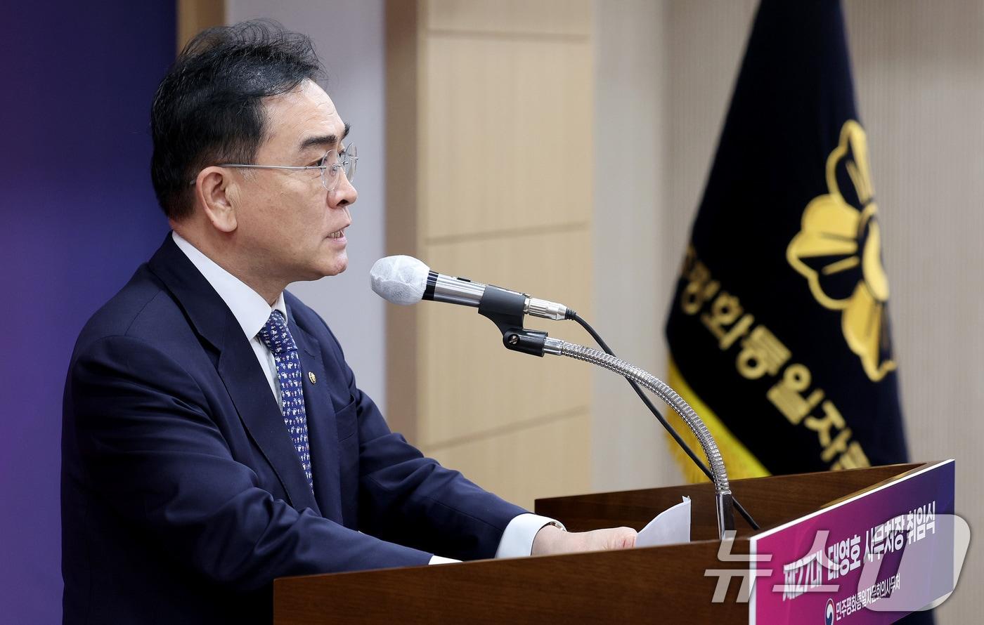 "김정은 '두 국가론' 꺼낸 건 北내부 상황 심각하기 때문"태영호 민주평화통일자문회의 사무처장이 22일 오전 서울 중구 민주평통 대회의실에서 열린 사무처장 취임식에서 취임사를 하고 있다. 2024.7.22/뉴스1 ⓒ News1 장수영 기자관련 키워드태영호통일민주평통임종석통일남북관계유민주 기자 통일부 , '무인기 사건 저자세' 비판에 "적법한 수사 왜곡·폄훼"'청년 운동' 장려…겨울철 '집중 학습' 조직 [데일리 북한]관련 기사"김일성 지시로 제주4·3 촉발" 태영호 전 의원 손배소 22일 선고탈북민 출신 첫 민주평통 사무처장 태영호 사임…이임식 열려조태용 국정원장 36억원…김영호 통일장관 30억원 신고[재산공개]'마약 투약' 태영호 전 의원 장남 '혐의없음' 불송치
