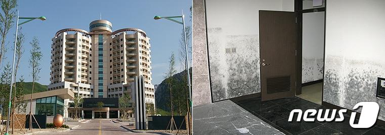 통일부가 공개한 금강산관광지구 남측 시설 중 '이산가족 면회소'. 정부가 소유하고 현대아산이 운영하는 이산가족 면회소는 2008년 7월 완공됐다. 지하 1층부터 지상12층, 객실 206실, 연회장 등으로 구성됐다. (통일부 제공) 2019.10.29/뉴스1관련 키워드북한금강산최소망 기자 北, 장마당 통제 위해 확대 추진한 '양곡관리소' 건설 지지부진北 "9차 당 대회 눈앞"…'뼈 깎는 고생' 언급하며 간부 통제 강화관련 기사남북경협단체, 정부에 '5·24 조치' 해제 촉구(종합)남북경협단체, 정부에 '5·24 조치' 해제 촉구남북교류협력지원협회, '재단 전환' 추진…민간 교류협력 허브로 재편통일부, 남북교류협력지원협회·하나재단 업무보고 첫 생중계남북 무인기 살포 주체 '공방'…軍 아니면 누가 날렸을까