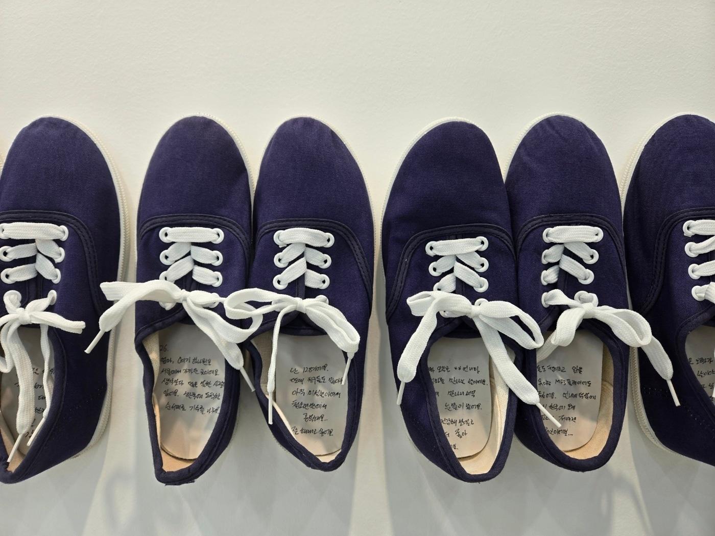 탈북 예술가 '코이'가 자신의 삶을 받아들이는 법 편집자주 ...155마일은 남북 사이에 놓인 군사분계선의 길이입니다. 이 경계의 실체는 선명하지만, 경계에 가려진 사실은 투명하지 않습니다. 분단의 현실을 직시하되, 경계 너머 북한을 제대로 보려는 사람들의 이야기를 담겠습니다.서울 강서구 남북통합문화센터에서 전시 중인 코이의 작품. 중국에서부터 한국에 도착하는 시점까지 부모님에게 보내고 싶은 편지를 북한 주민들이 싣는 '편리화' 밑창에 적었다. 작품명은 '오늘을 걷는 이유'(2025). 2025.4.23/뉴스1 ⓒ News1 서울 강서구 남북통합문화센터에서 전시 중인 코이의 작품. 고향에 두고 온 지인 50명에게 안부를 전하는 메시지를 담았다. 작품명은 '추억은 위로가 되어'(2025) 2025.4.23/뉴스1 ⓒ News1 관련 키워드북한북한이탈주민탈북민정체성155마일유민주 기자 9차 당 대회 앞두고 농촌 발전 선전…새해 '체육의 날' 활동 [데일리 북한]새 병원 완공한 北, 의료기술 '현대화'도 선전관련 기사국힘, '탈북민→북향민' 명칭 변경 추진에 "정권의 왜곡된 인식 드러나"[단독] '연락두절' 고위험군 탈북민 증가세…지난해만 187명정동영, 北은 '조선민주주의인민공화국'이라며…"체제 존중"(종합)정동영, 北에 "지방발전·보건 대규모 사업 추진 준비돼 있어"노동신문 '특수자료→일반자료' 전환…주요 도서관서 누구나 볼 수 있다