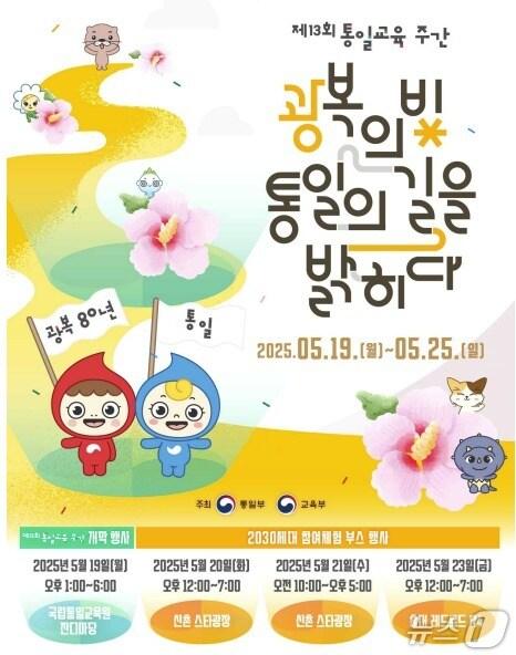 국립통일교육원 최초 개방…누구나 방문 가능국립통일교육주간 포스터(통일부 제공)관련 키워드통일부국립통일교육원통일교육주간최소망 기자 北, 국방·건설 성과 자찬, 외교 성과는 '침묵'…꽁꽁 숨긴 대외 기조서보혁 통일연 연구위원, 제30대 북한연구학회장 취임관련 기사통일·안보 현장 체험한 美조지메이슨대 학생들…통일 공감대 확산통일교육원, 청소년 대상 숏츠 영화제…'우리는 가족인가요' 등 최우수상통일미래센터, 취약계층 학생들 위해 '온라인 통일체험교육' 운영국립통일교육원·서울시교육청, 통일교육 활성화 업무협약미래센터, 청소년 200여명 대상 겨울방학 특별 프로그램 진행