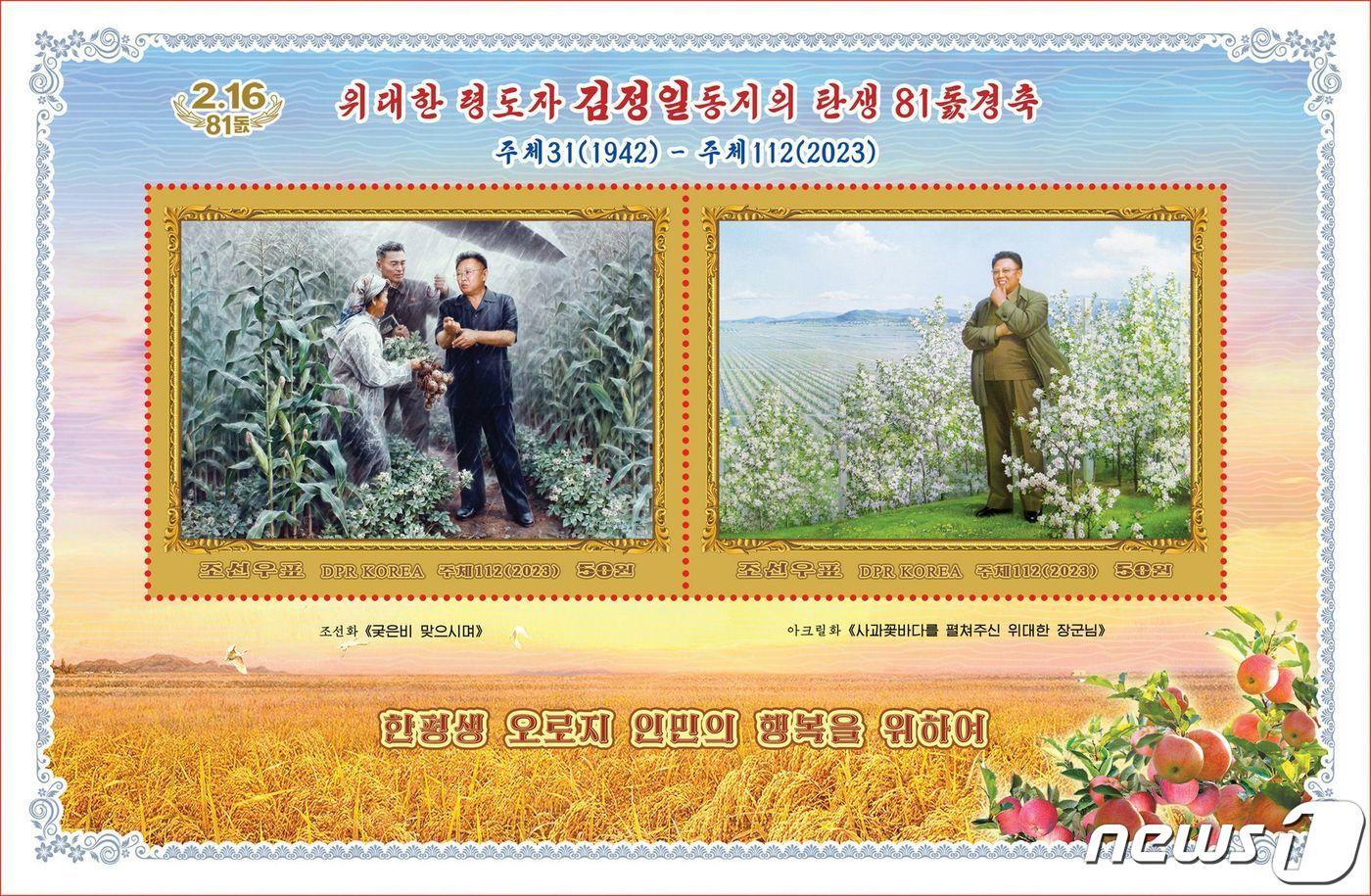 (평양 노동신문=뉴스1) = 북한 노동당 기관지 노동신문은 16일 김정일 국방위원장의 생일인 '광명성절' 81주년을 맞아 "국가우표발행국에서 새 우표(묶음전지 1종·개별우표 4종)들을 발행했다"라고 보도했다. [국내에서만 사용가능. 재배포 금지. DB 금지. For Use Only in the Republic of Korea. Redistribution Prohibited] rodongphoto@news1.kr