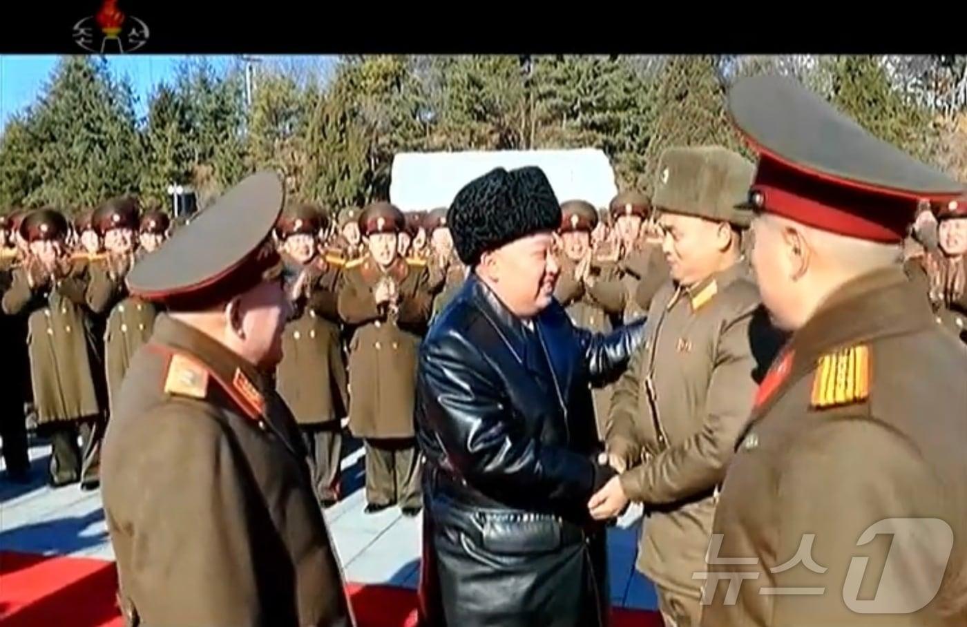 김정은 북한 노동당 총비서가 김일성정치대학에서 항일 빨치산 1세대인 김책의 증손자를 만나 격려하고 있다. (조선중앙TV 갈무리)