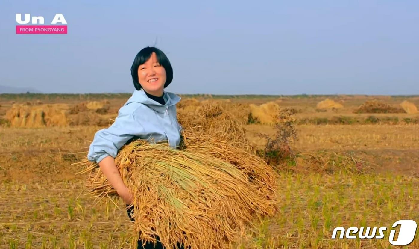 북한 선전 유튜브 '에코오브트루스(Echo of Truth)'는 30일 자 영상을 통해 황해북도 은파군 대청리 농장의 벼 탈곡 작업을 조명했다. ('에코오브트루스(Echo of Truth)' 갈무리)ⓒ 뉴스1