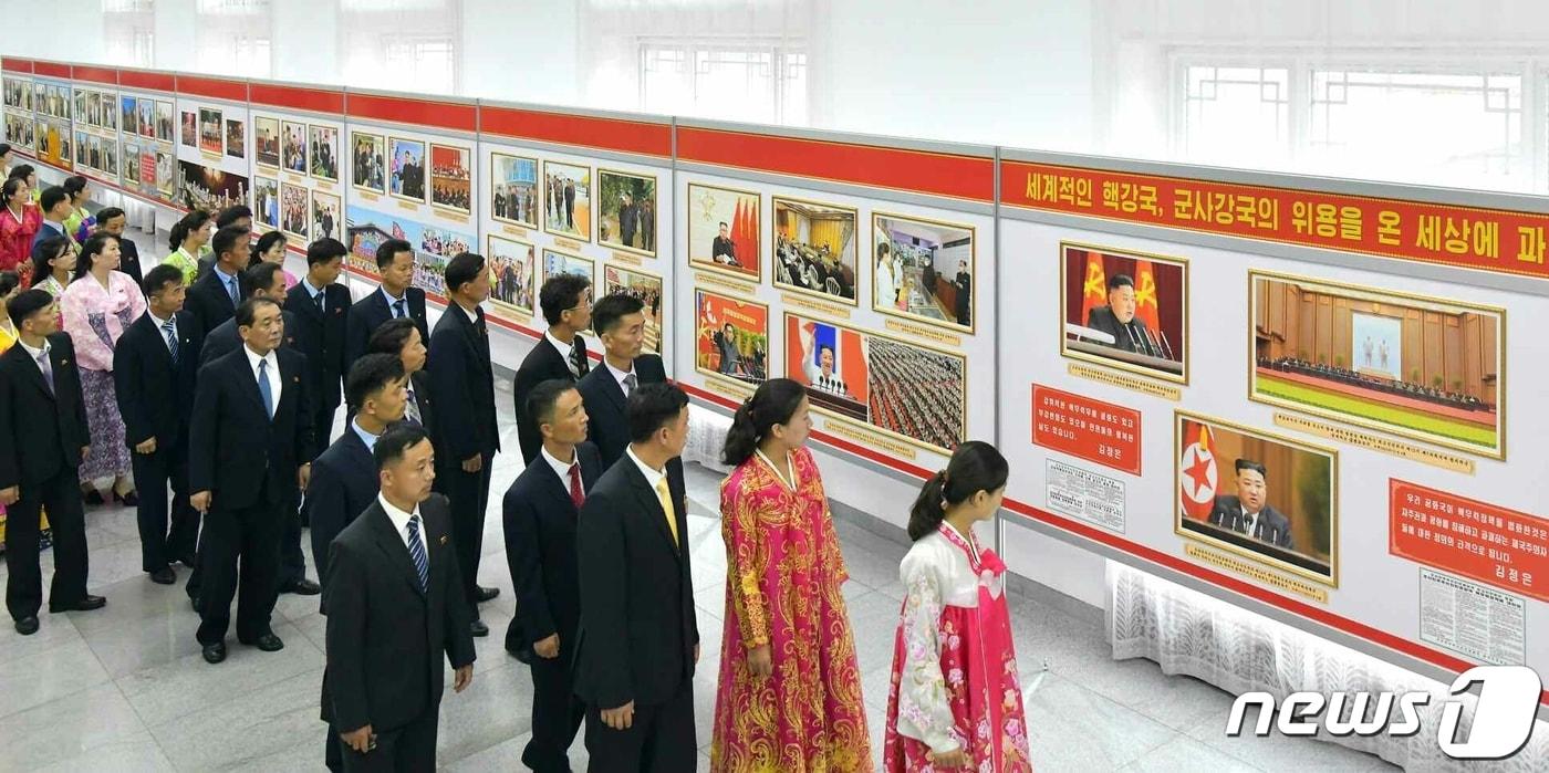 (평양 노동신문=뉴스1) = 북한 노동당 기관지 노동신문은 5일 정권수립기념일 75주년(9월9일)을 앞두고 각종 경축 행사가 열렸다고 보도했다. 사진은 4일 개막한 중앙사진전람회 '자주, 자립, 자위로 위용떨쳐온 승리의 75년'을 관람하는 북한 주민들. [국내에서만 사용가능. 재배포 금지. DB 금지. For Use Only in the Republic of Korea. Redistribution Prohibited] rodongphoto@news1.kr