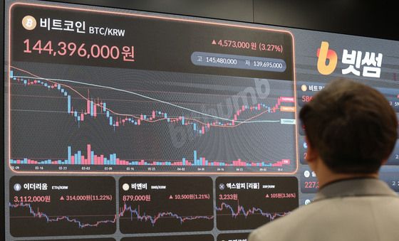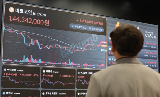 (서울=뉴스1) 이승배 기자 = 9일 오전 서울 강남구 업비트 라운지에 가상자산(암호화폐) 시세가 표시되고 있다.
