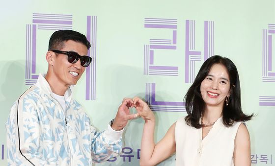 (서울=뉴스1) 권현진 기자 = 가수 션과 배우 정혜영 부부가 31일 서울 강남구 코엑스 메가박스에서 열린 영화 '원더랜드‘ VIP 시사회에서 포즈를 취하고 있다.