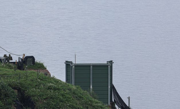 (서울=뉴스1) 신웅수 기자 = 10일 경기 파주시 접경지역 초소에 기존 대북 방송 확성기가 있었던 군사 시설물이 자리하고 있다.