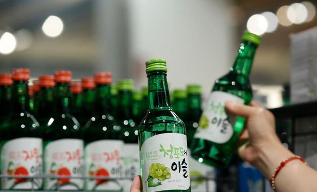 (서울=뉴스1) 권현진 기자 = 27일 서울의 한 대형마트에 소주가 진열돼 있다.